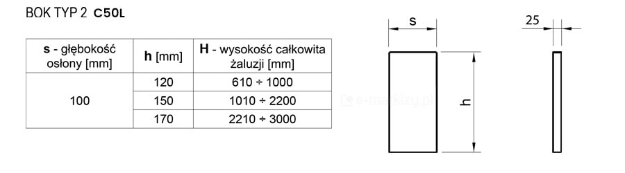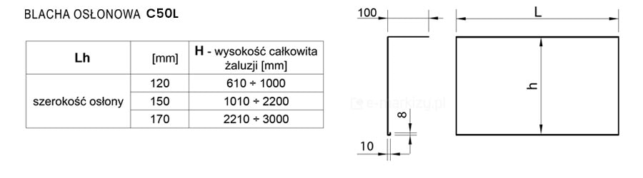Blachy osłonowe do żaluzji fasadowych C50 – typy, opis i rodzaje