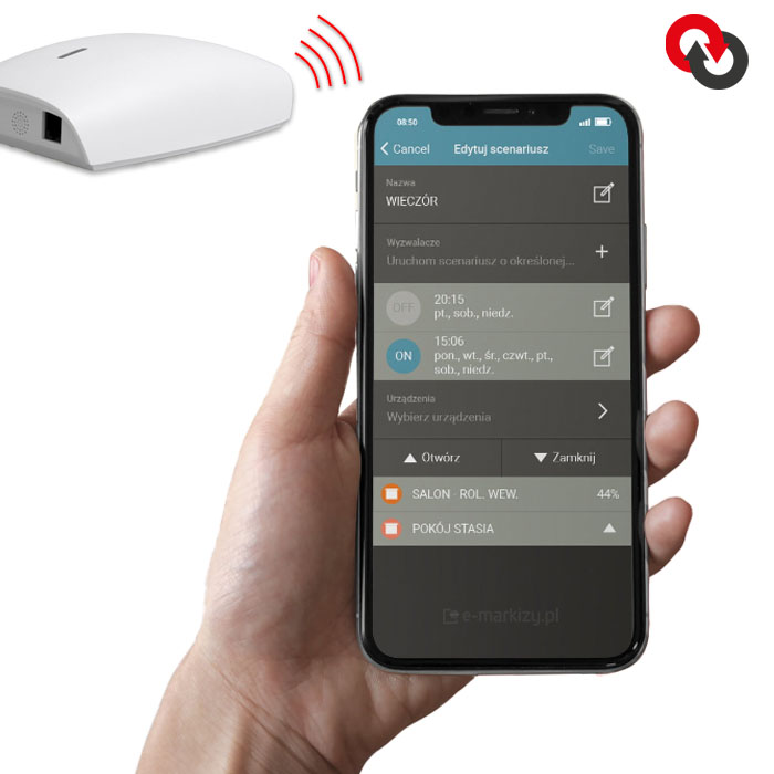 - Kompatybilność ze wszystkimi urządzeniami naszych marek umożliwia sterowanie zarówno roletami wewnętrznymi jak i zewnętrznymi, a także firanami, zasłonami, markizami, oświetleniem itd.