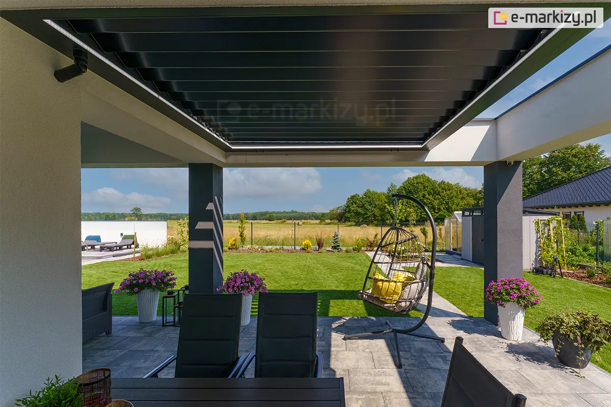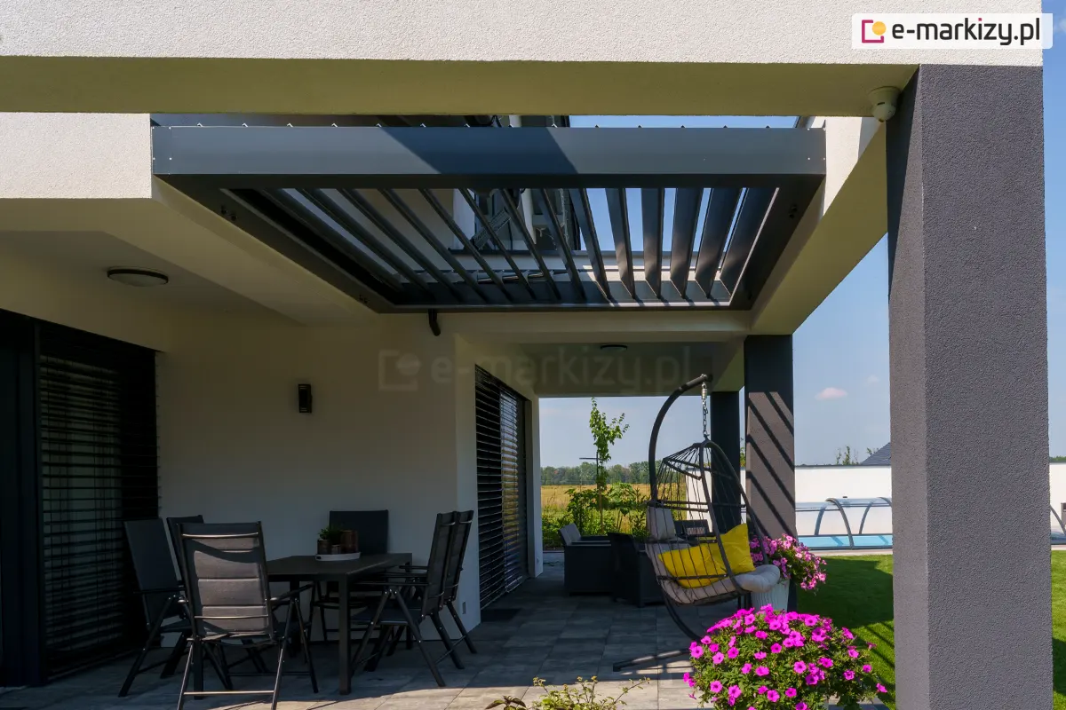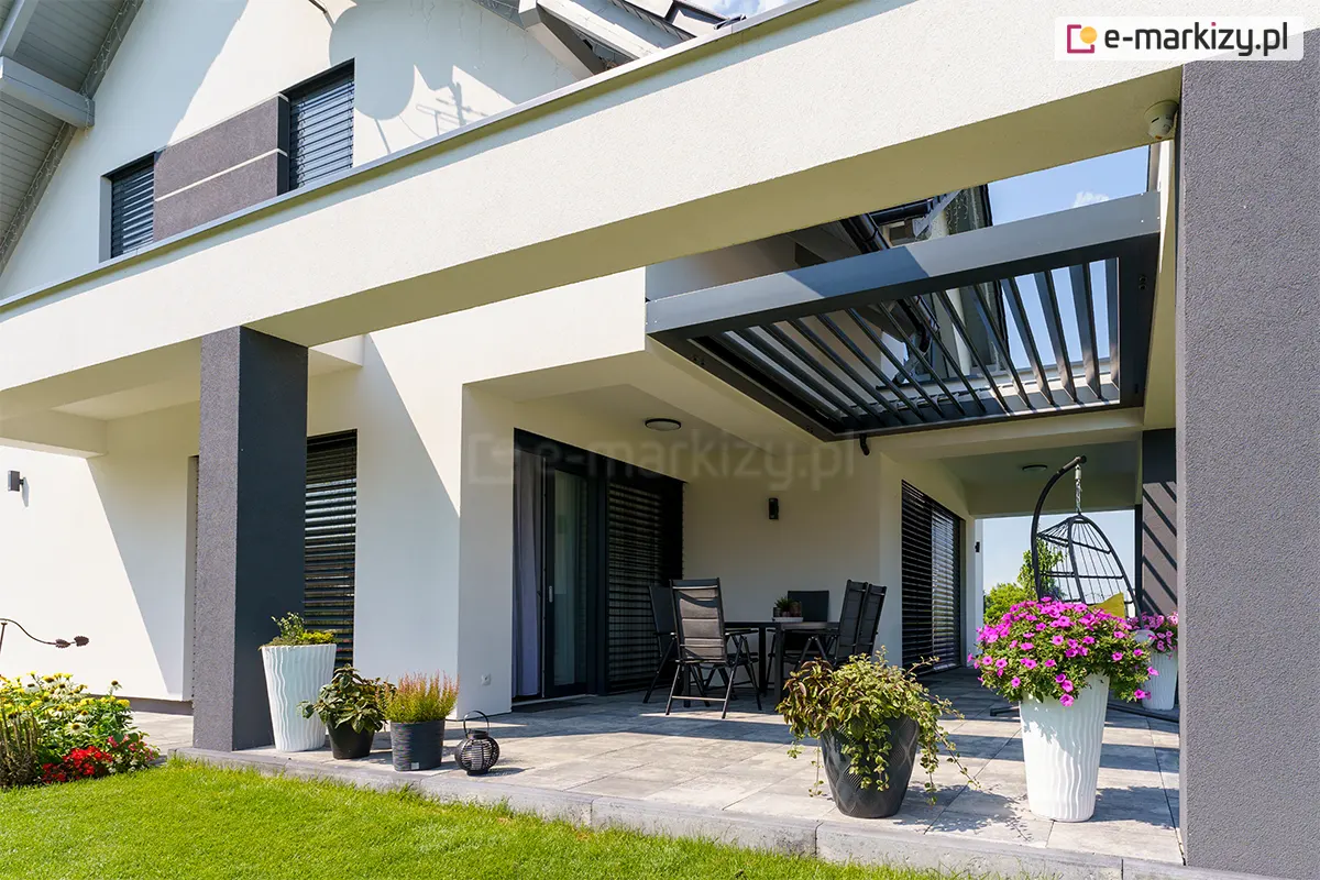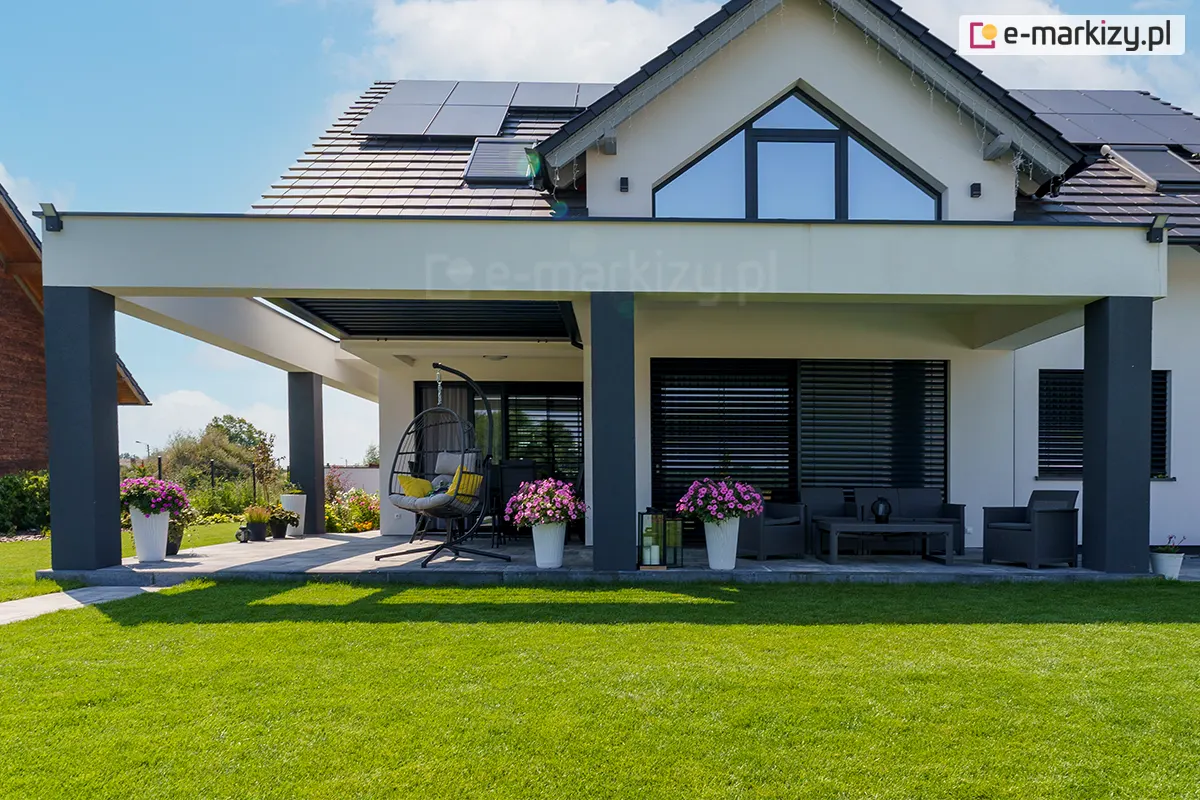 Dachy lamelowe można łączyć modułowo w kierunku wzdłużnym lub poprzecznym, co pozwala na stworzenie zadaszenia o dowolnej wielkości. Każdy moduł oferuje maksymalną szerokość 400 cm i wysięg 700 cm. Dzięki temu można łatwo dostosować rozmiar i kształt zadaszenia do swoich potrzeb, łącząc poszczególne moduły w większe, spójne konstrukcje w kształcie litery L lub prostokątne. To idealne rozwiązanie dla osób poszukujących elastycznego i funkcjonalnego systemu zadaszenia na swoją posesję.