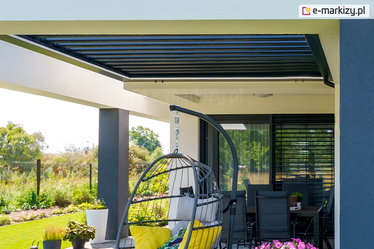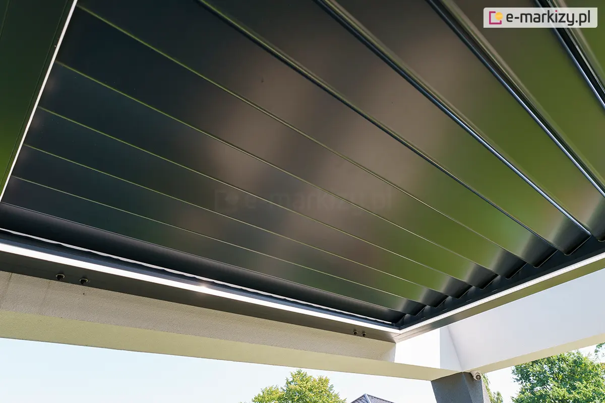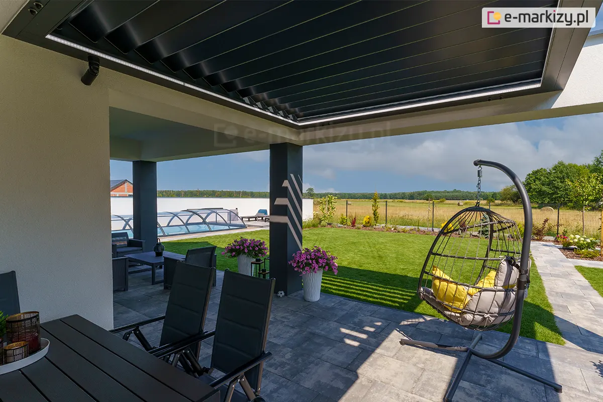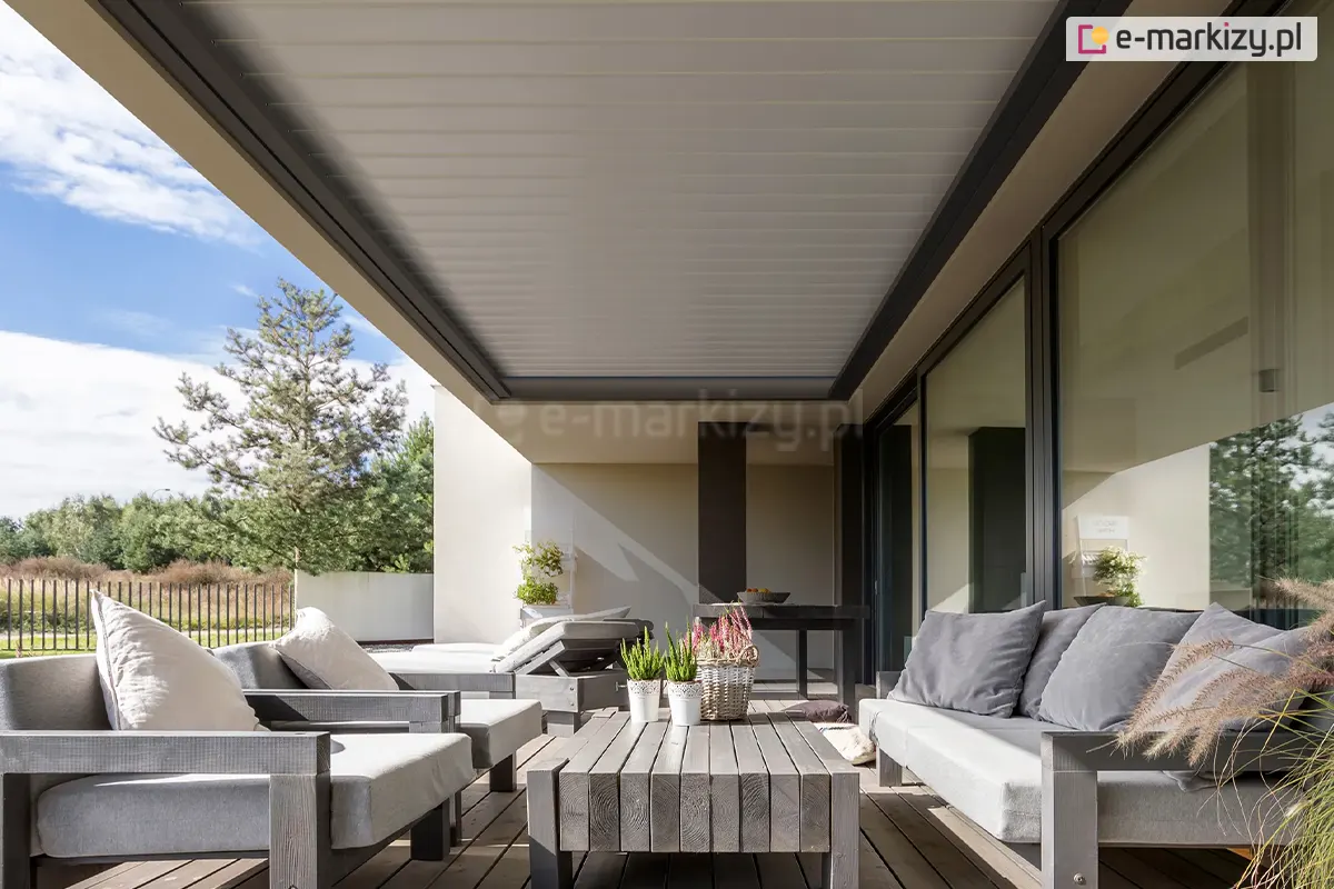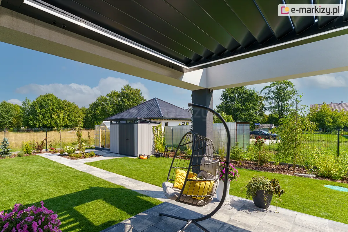 Dachy lamelowe można łączyć modułowo w kierunku wzdłużnym lub poprzecznym, co pozwala na stworzenie zadaszenia o dowolnej wielkości. Każdy moduł oferuje maksymalną szerokość 400 cm i wysięg 700 cm. Dzięki temu można łatwo dostosować rozmiar i kształt zadaszenia do swoich potrzeb, łącząc poszczególne moduły w większe, spójne konstrukcje w kształcie litery L lub prostokątne. To idealne rozwiązanie dla osób poszukujących elastycznego i funkcjonalnego systemu zadaszenia na swoją posesję.