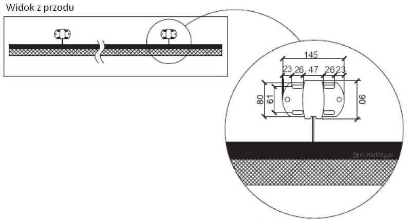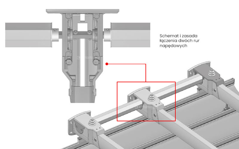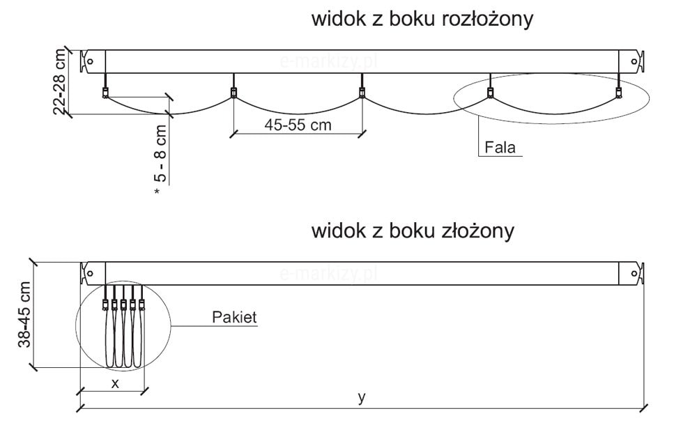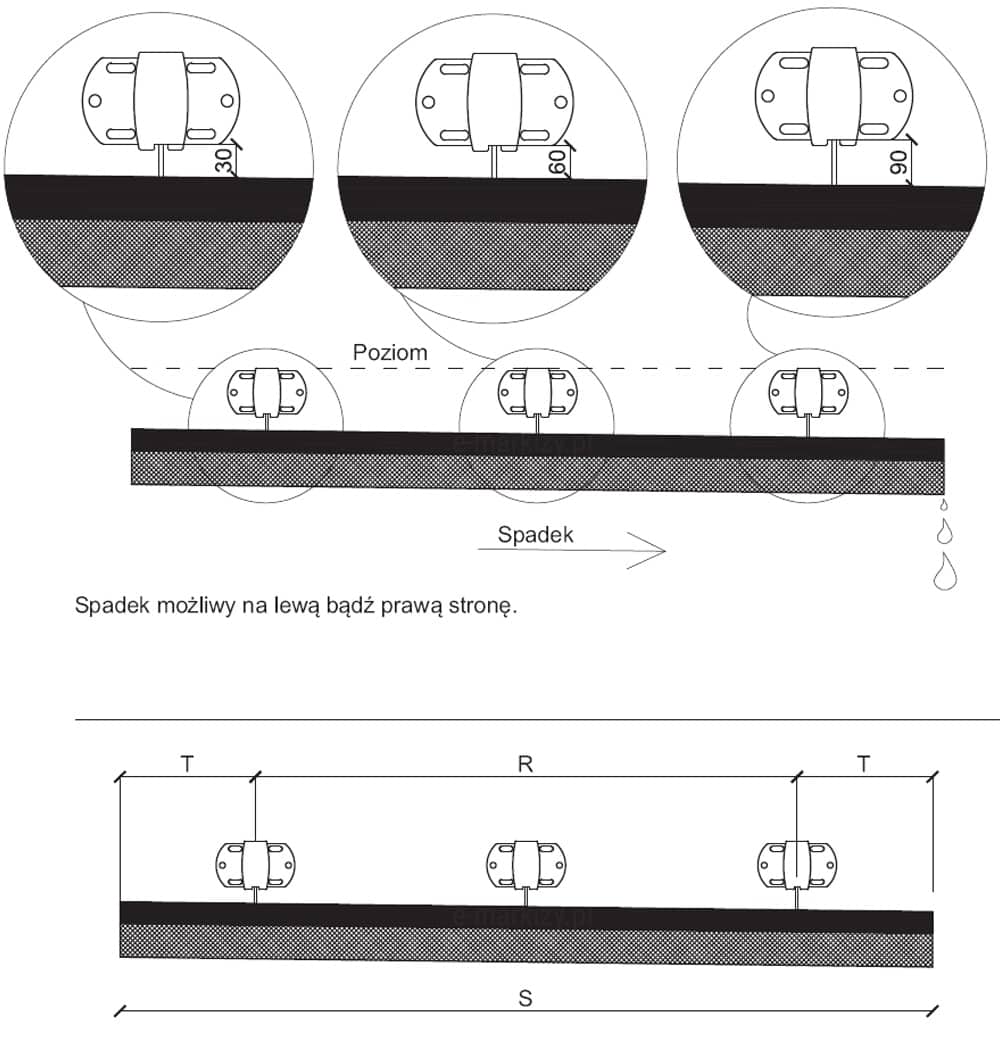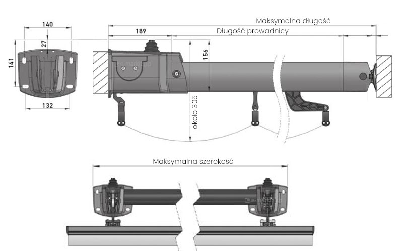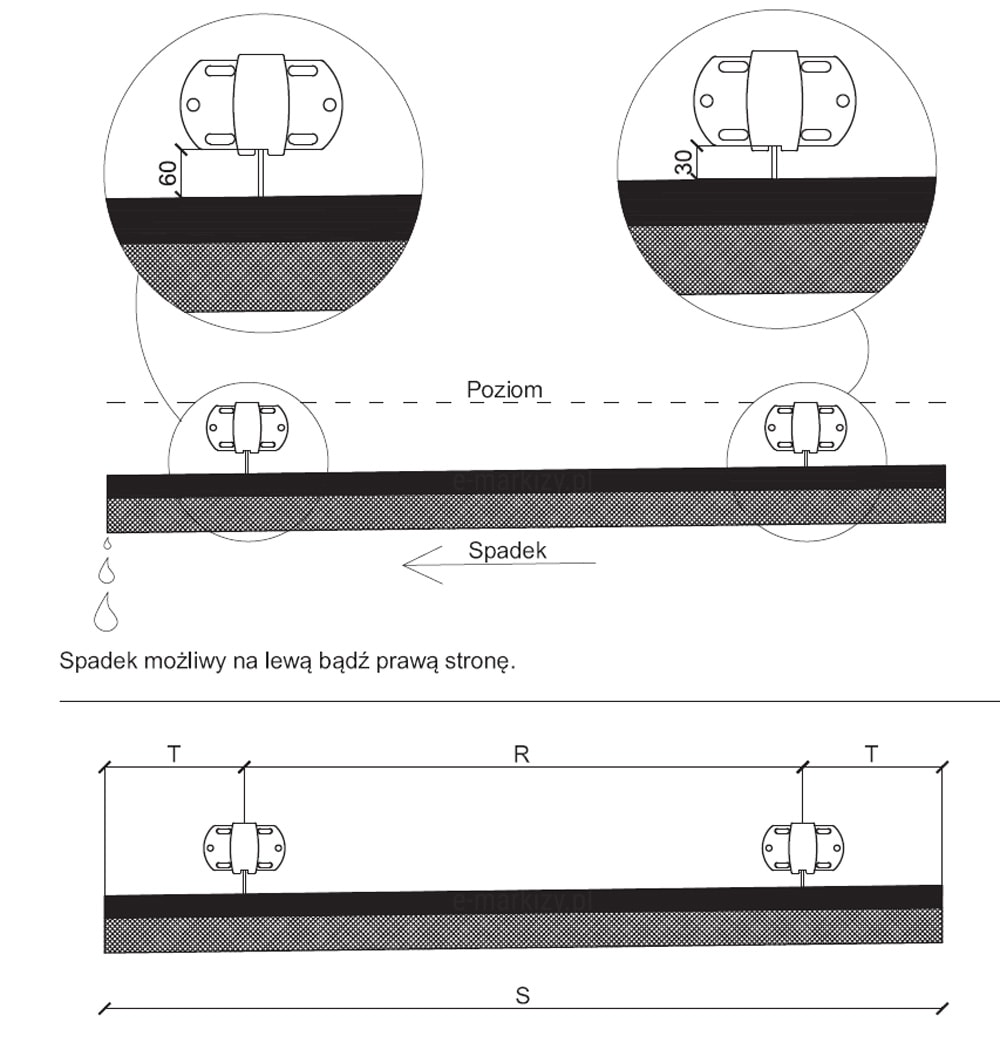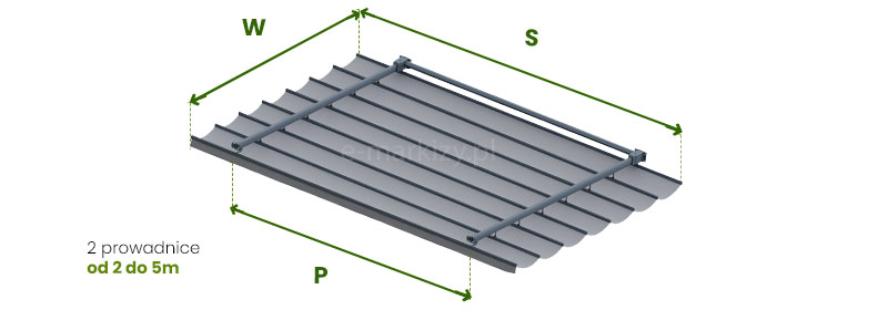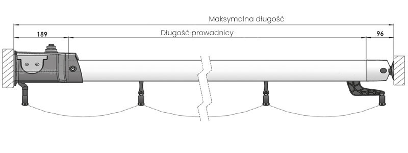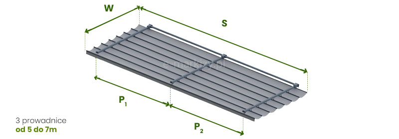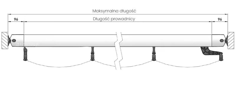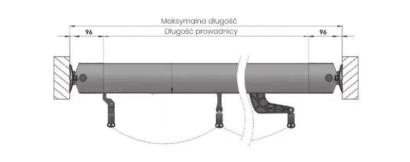 Dla szerokości do 550 cm , prowadnice należy umieścić w rozstawie do 400 cm przy zestawie 2 prowadnic.
