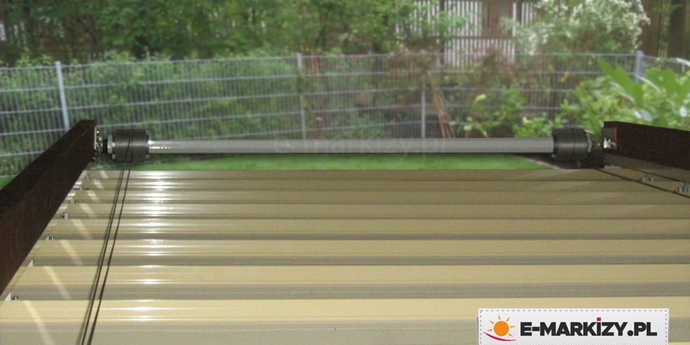 Sposób zamontowania napędu rurowego w pergoli (widok od góry)