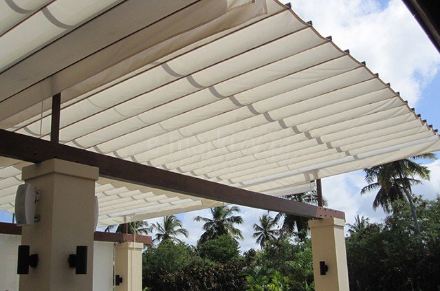Roleta pozioma rzymska Supro to wersja podwieszana na prowadnicach do dowolnej konstrukcji tarasowej, mogą to być pergole drewniane, aluminiowe, a także konstrukcje stalowe i betonowe. Prowadnice Supro podwieszane są do konstrukcji od boku lub dołu. Prowadnica w tym modelu posiada wymiary 40x40mm i wykonana jest z ekstrudowanego aluminium. Standardowo sterowanie tkaniną dachu odbywa się za pomocą systemu sznurków poruszających belki tkaniny na prowadnicach. Istnieje możliwość zamówienia dachu rzymskiego w wersji elektrycznej, w takim wypadku wyposażony jest w rurę nawojową (w jednym elemencie lub dzieloną), a dach rzymski sterowany jest automatycznie za pomocą pilota bezprzewodowego.