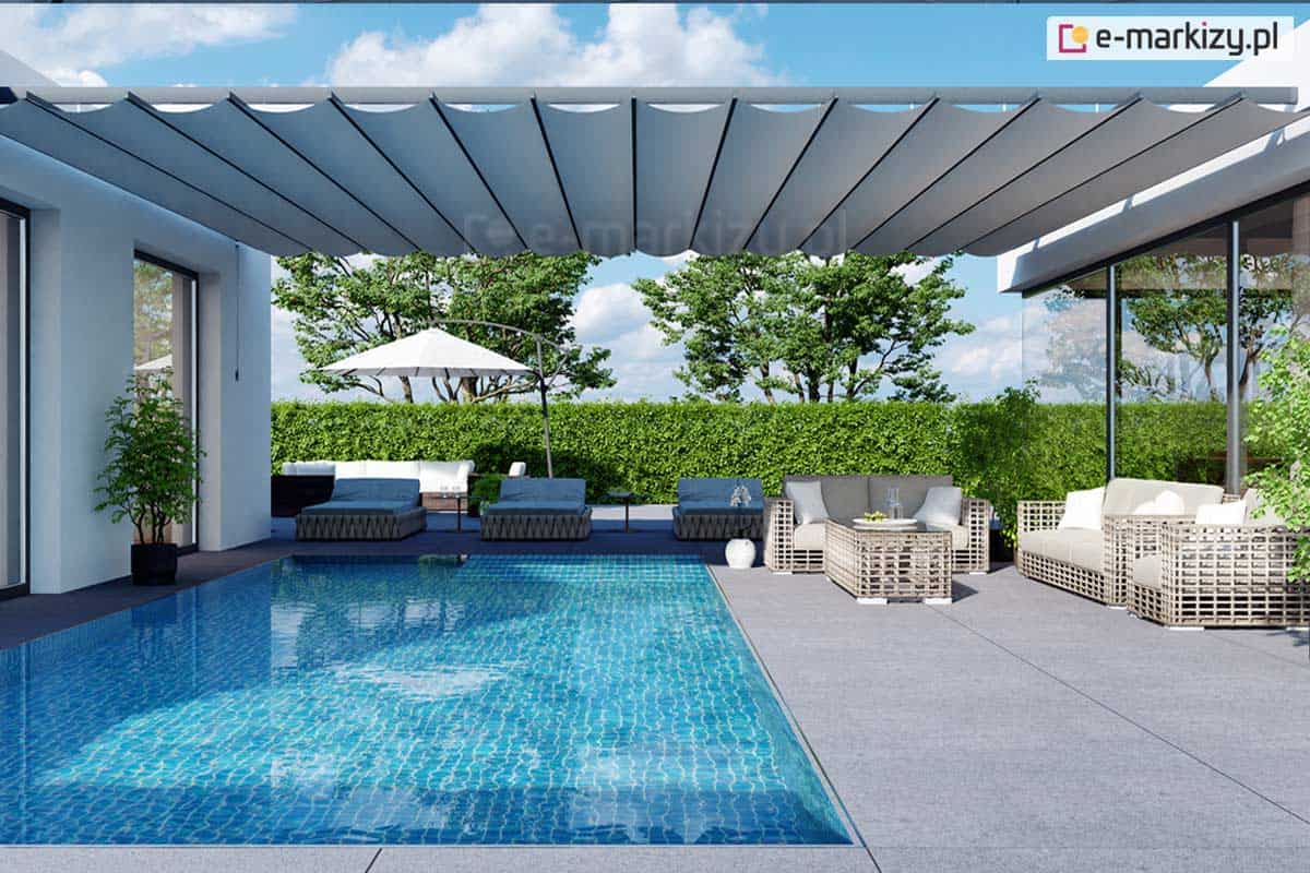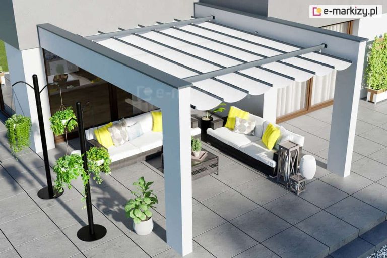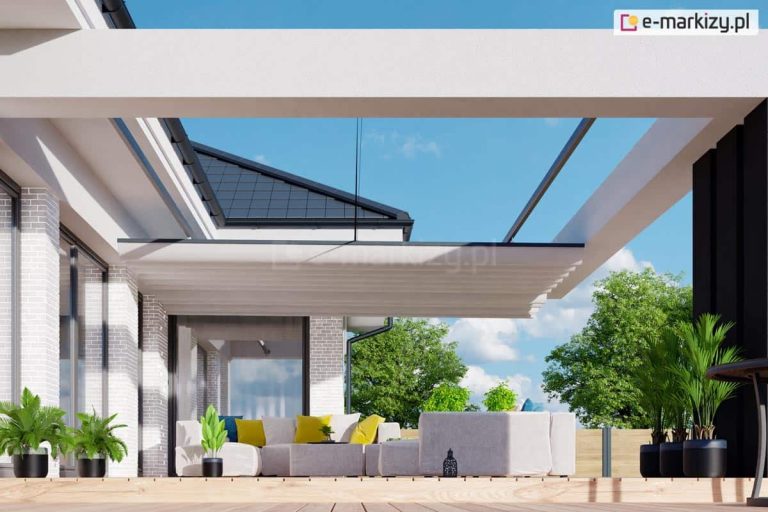 Nowoczesne budownictwo w domkach jednorodzinnych i wypoczynkowych często posiada opaski betonowe nad tarasem. Z myślą o takich rozwiązaniach, prowadnice zadaszenia skonstruowane są w taki sposób, by można zamontować dach rzymski między tymi opaskami betonowymi. Zadaszenie między betonowymi opaskami nadaje tarasowi jednolity i oryginalny wygląd, zwłaszcza gdy dobierzemy taką samą lub kontrastującą ze sobą kolorystykę elementów budynku i osłony. Już na etapie projektu warto uwzględnić z architektem możliwość zastosowania osłony poziomej, tak by całość tarasu jak najlepiej się ze sobą komponowała.