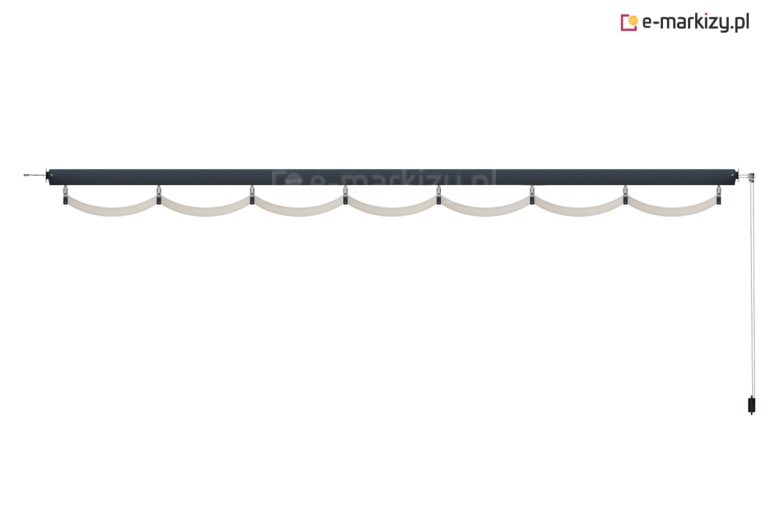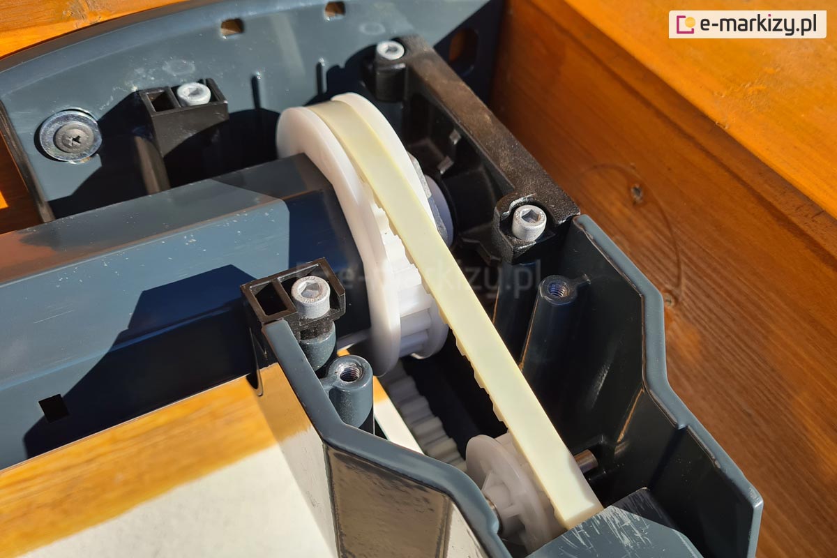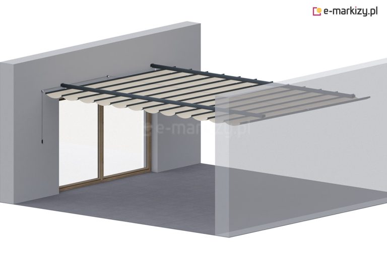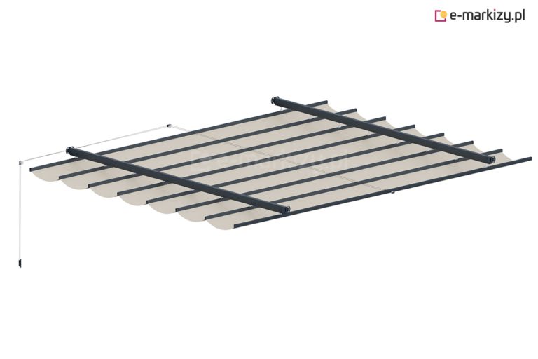 - Dach rzymski można doposażyć w silnik elektryczny, który automatycznie zwija tkaninę.