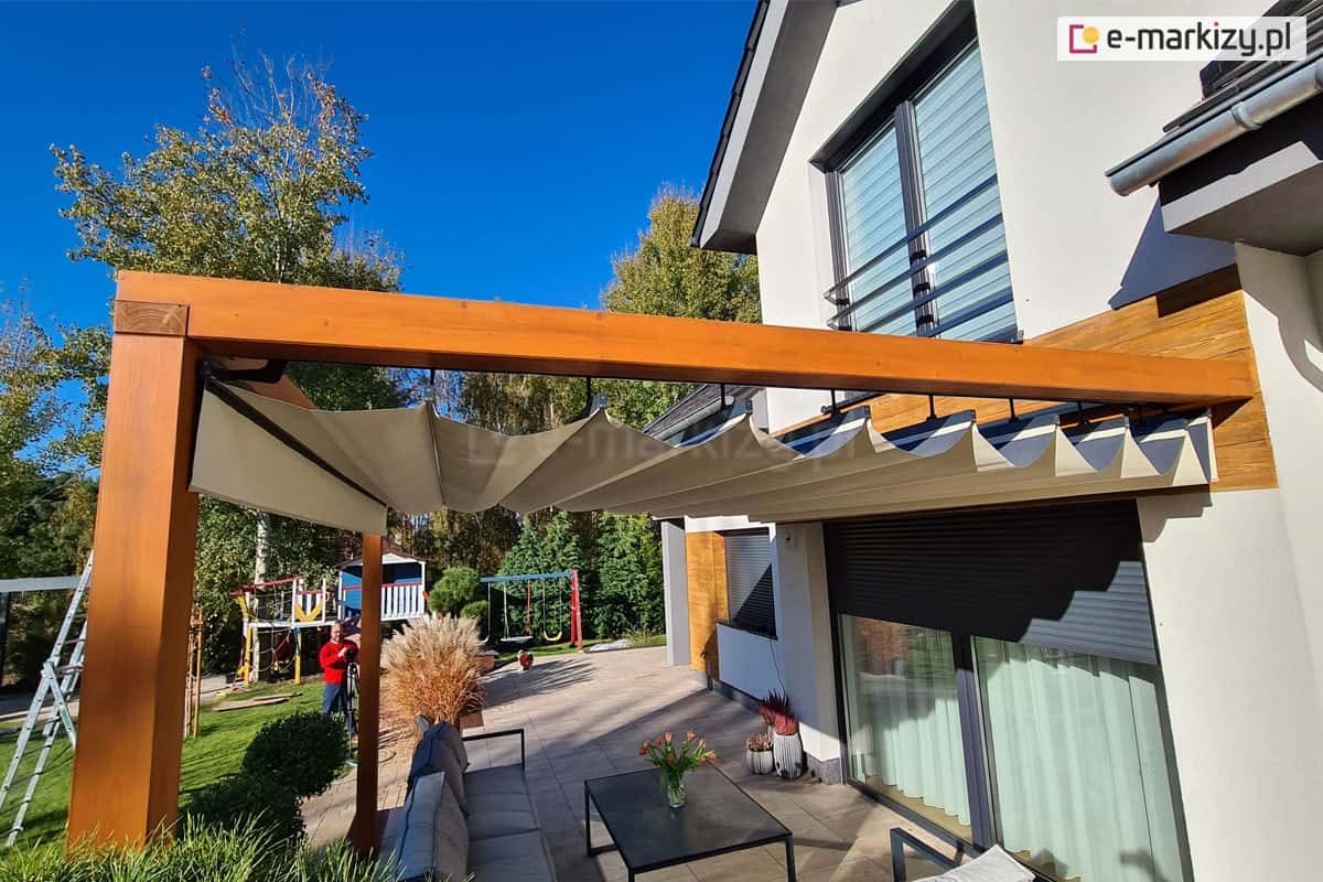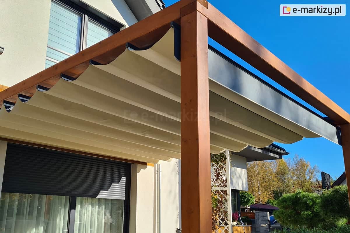Do pergol dachowych, proponujemy różnego rodzaju tkaniny. Do wyboru jest standardowe kolekcje tkanin akrylowych oraz w pełni wodoodporne tkaniny typu Opatex, a także tkaniny przezierne Soltis. Niektóre typy tkanin uzależnione są od wybranego wymiaru zadaszenia.