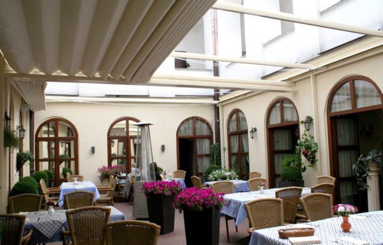 Dach do Pergoli Silva szczególnie zalecany jest na tarasy i ogródki gastronomiczne. Konstrukcja jest odporna na wiatr. Tkanina zamocowana do belek przeciw-wietrznych, układa się w dekoracyjne fale. Faliście ułożony materiał zadaszenia skutecznie chroni przed słońcem i deszczem, jednocześnie w prosty i skuteczny sposób odprowadza wodę deszczową na jedną ze stron dachu. Silva to doskonała propozycja pod względem funkcjonalnym i ekonomicznym dla zadaszenia tarasu lub ogrodu. Mocowanie odbywa się między ścianami budynku, belkami pergoli lub innymi konstrukcjami stalowymi, aluminiowymi lub betonowymi.