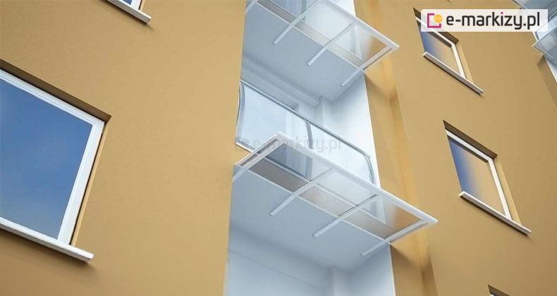 Daszki balkonowe to zadaszenia, które cieszą się zainteresowaniem nie tylko mieszkańców bloków. W naszej ofercie znajdziesz kilka modeli takich daszków. W tej galerii prezentujemy daszek balkonowy loggia, przygotowany z myślą o montażu do płyty balkonu powyżej.