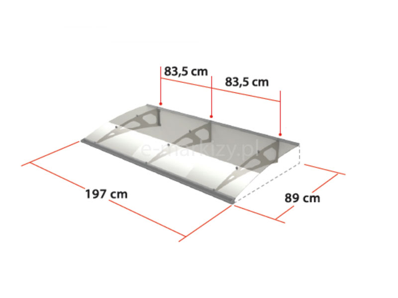 Montaż oferowanych przez nas daszków jest niezwykle prosty. Wystarczy nawiercić w ścianie otwory, w miejscach w których znajdują się uchwyty i dokręcić daszek do ściany. Każdy daszek posiada instrukcję jego zamontowania dołączoną do produktu.