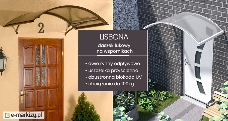 Lisbona to daszek o klasycznym łukowym kształcie. Wykonany został z aluminium malowanego proszkowo na trzy kolory do wyboru: biały, brązowy, antracytowy. Wypełnienie daszka wykonane zostało z poliwęglanu komorowego i występuje w dwóch kolorach: przejrzystym oraz dymnym (brązowy). Zastosowana w wypełnieniu płyta z poliwęglanu komorowego zapewnia obustronną blokadę promieni UV. Daszek Lisbona wytrzymuje obciążenie do 100 kg.