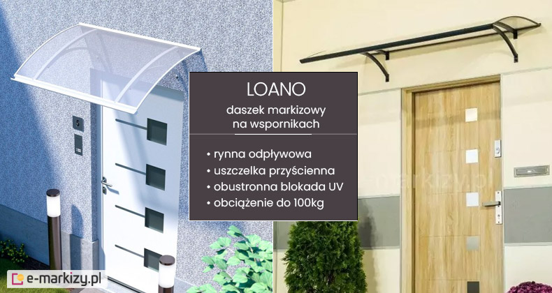 Daszek Loano ma kształt markizy opierającej się na wspornikach. Konstrukcja z aluminium malowanego proszkowo występuje w trzech kolorach do wyboru: białym, brązowym oraz antracytowym. Wypełnienie natomiast może być w kolorze przejrzystym lub dymnym. Zastosowana w wypełnieniu płyta z poliwęglanu komorowego zapewnia obustronną blokadę promieni UV. Daszek Loano wytrzymuje obciążenie do 100 kg.