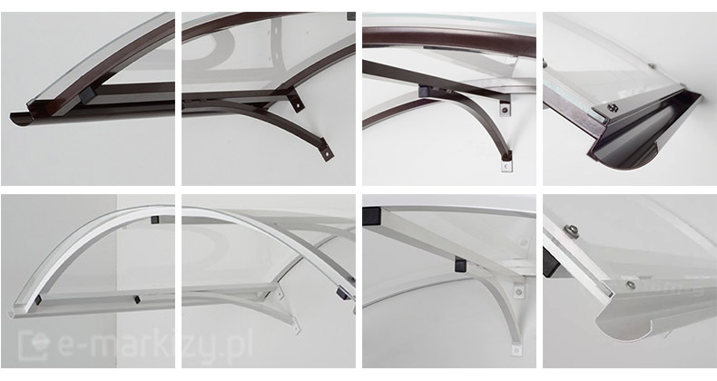 Montaż oferowanych przez nas daszków jest niezwykle prosty. Wystarczy nawiercić w ścianie otwory, w miejscach w których znajdują się uchwyty i dokręcić daszek do ściany. Każdy daszek posiada instrukcję jego zamontowania dołączoną do produktu.