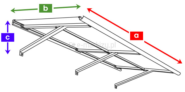 Pomiaru daszku dokonuje się na podstawie przedstawionego rysunku, gdzie litery na obrazku odpowiadają odpowiednio wymiarom podanym w przedstawionej ofercie: