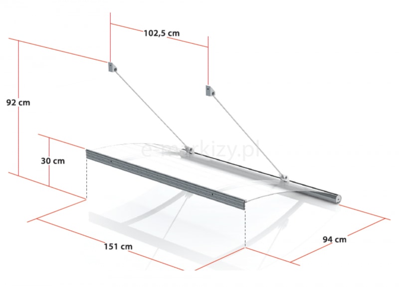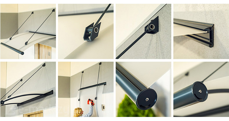 Montaż oferowanych przez nas daszków jest niezwykle prosty. Wystarczy nawiercić w ścianie otwory, w miejscach w których znajdują się uchwyty i dokręcić daszek do ściany. Każdy daszek posiada instrukcję jego zamontowania dołączoną do produktu.