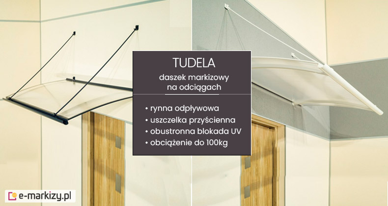 Daszek Tudela ma kształt markizy i montowany jest na odciągach. Konstrukcja z aluminium malowanego proszkowo może zostać wykonana w jednym z trzech kolorów: biały, brązowy, antracytowy. Wypełnienie z poliwęglanu komorowego może być natomiast wykonane w kolorze przejrzystym lub dymnym. Daszek Tudela zapewnia obustronną blokadę promieni UV. Maksymalne obciążenie daszka to 100 kg.