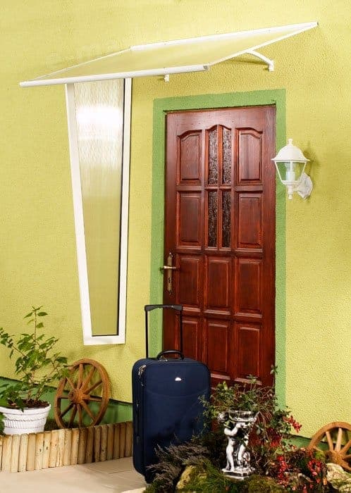 Wszystkie oferowane przez nas ścianki boczne do daszków i zadaszeń nad drzwi wyposażone są w uszczelkę przyścienną. Dzięki temu ścianka chroni nie tylko drzwi wejściowe, lecz także ścianę przed zaciekaniem wody.