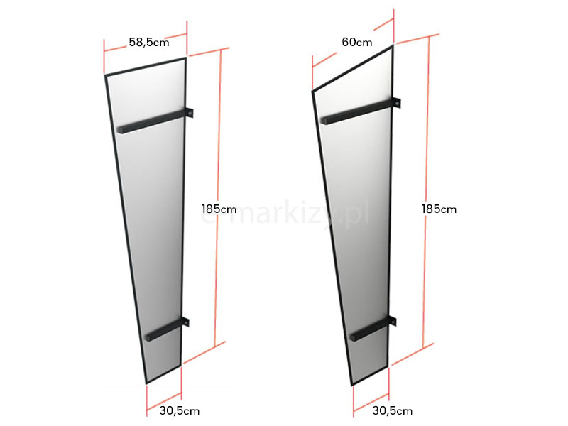 Pomiaru ścianki bocznej dokonuje się na podstawie przedstawionego rysunku, gdzie litery na obrazku odpowiadają odpowiednio wymiarom podanym w przedstawionej ofercie: