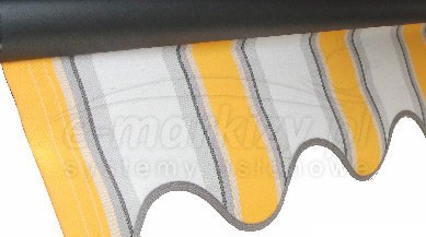 Oferta skierowana jest przede wszystkim dla osób, które chcą wymienić w swojej markizie jedynie falbanę. Dostępne są typy C,D lub E.Wysokość falbany to 21cm. Falbany do markiz są obszyte grubą lamówką i posiadają pręt zaszyty w kieszonce. Falbana jest wsunięta w belkę przednią markizy. W razie potrzeby możemy odkręcić zaślepkę belki przedniej i wysunąć (zdemontować) falbanę.