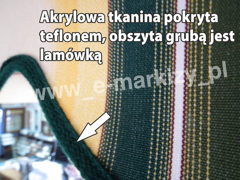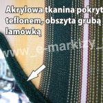 Nasze tkaniny są dostępne w ponad 100 kolorach, teflonowa warstwa pomaga w odprowadzaniu wody, zapewnia trwałość kolorów i odporność na działanie światła. Grubość tkaniny zapewnia znaczną wodoodporność zachowując jednocześnie właściwości wentylacyjne.
