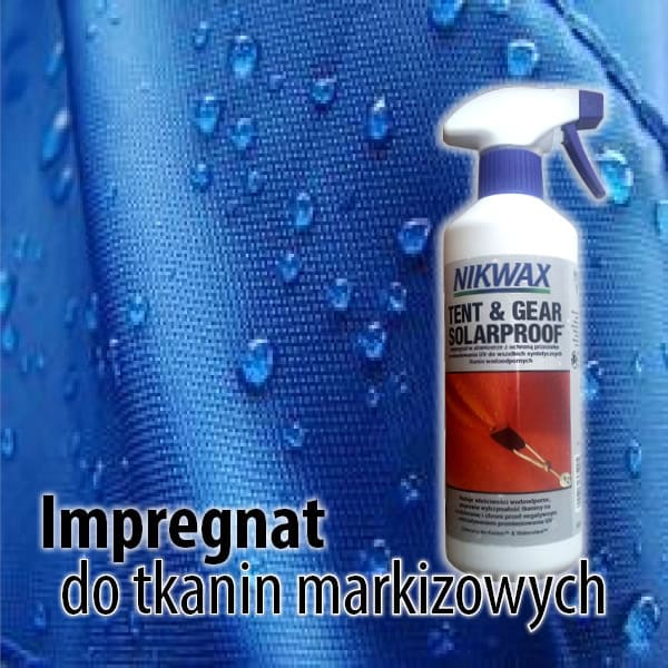 Impregnat w spray’u z ochroną przed promieniowaniem UV do stosowania na materiałach o właściwościach wodoodpornych w tym markiz. Środek impregnacyjny Nikwax został specjalnie zaprojektowany w taki sposób, by zostawiał elastyczną, wodoodporną powłokę na pojedynczych włóknach, zapobiegając przemakaniu materiałów i pozwalając przedostawać się parze na zewnątrz, zachowując właściwości oddychające.