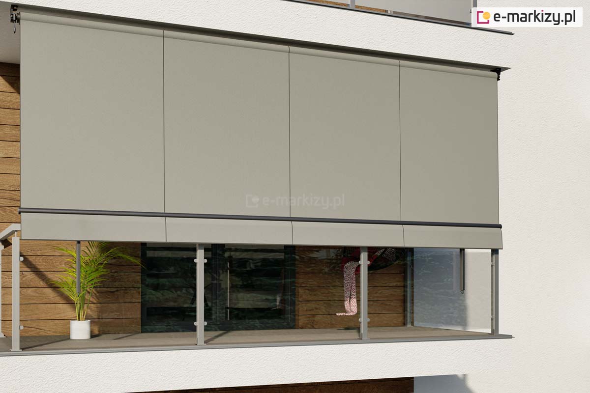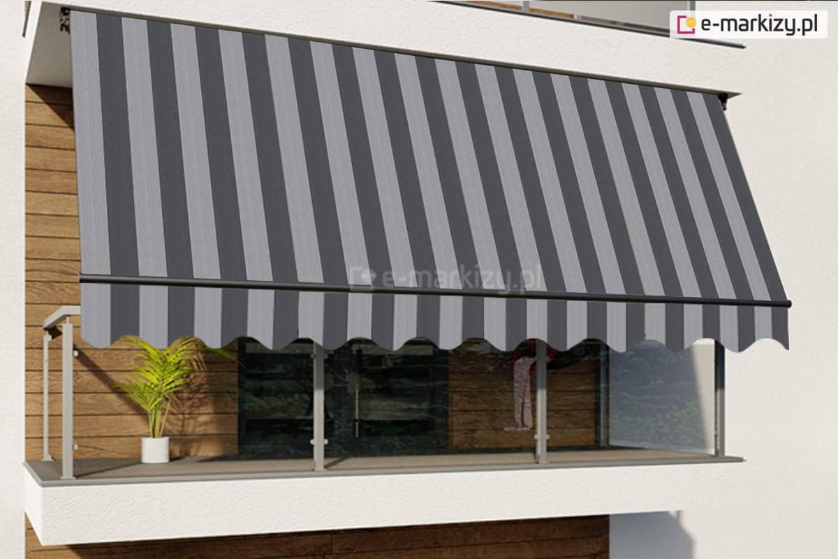 Lekkość markizy w połączeniu z mocowaniami balustradowymi pozwalają na wykonanie jej w rozmiarach standardowych balkonów. Maksymalna szerokość to 5m a wysięg 0,7m.