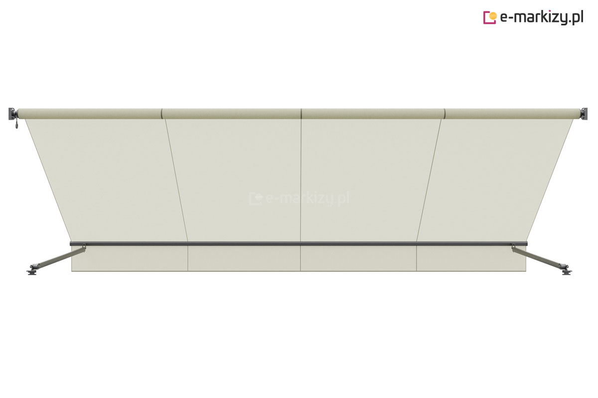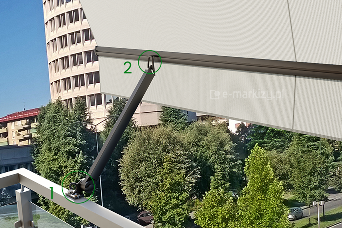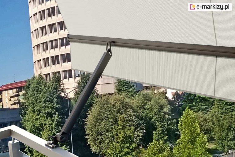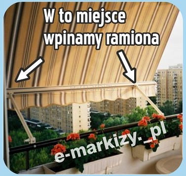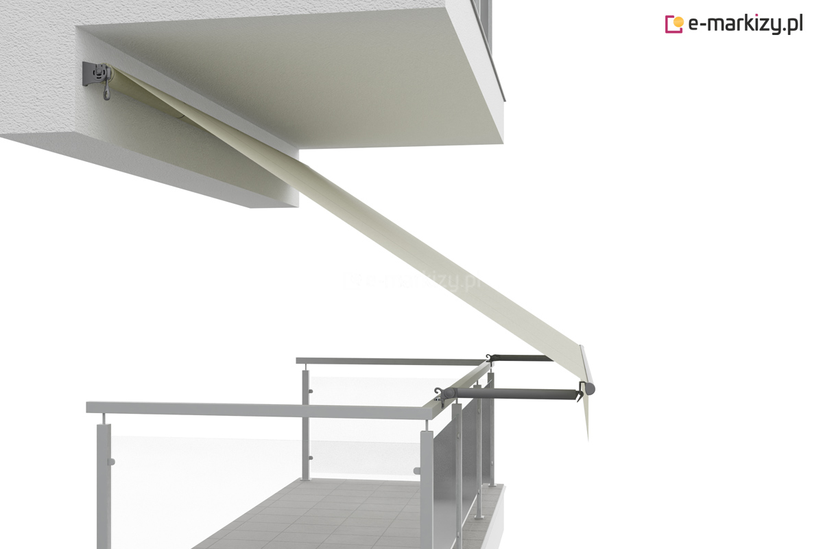 Na końcach i u podstawy ramion znajdują się haki, do których zaczepia się belkę przednią z materiałem. Odpowiednie naprężenie markizy osiąga się przez zwinięcie nadmiaru tkaniny. Markiza Balkonowa Poręczowa to najczęściej wybierana osłona balkonowa.