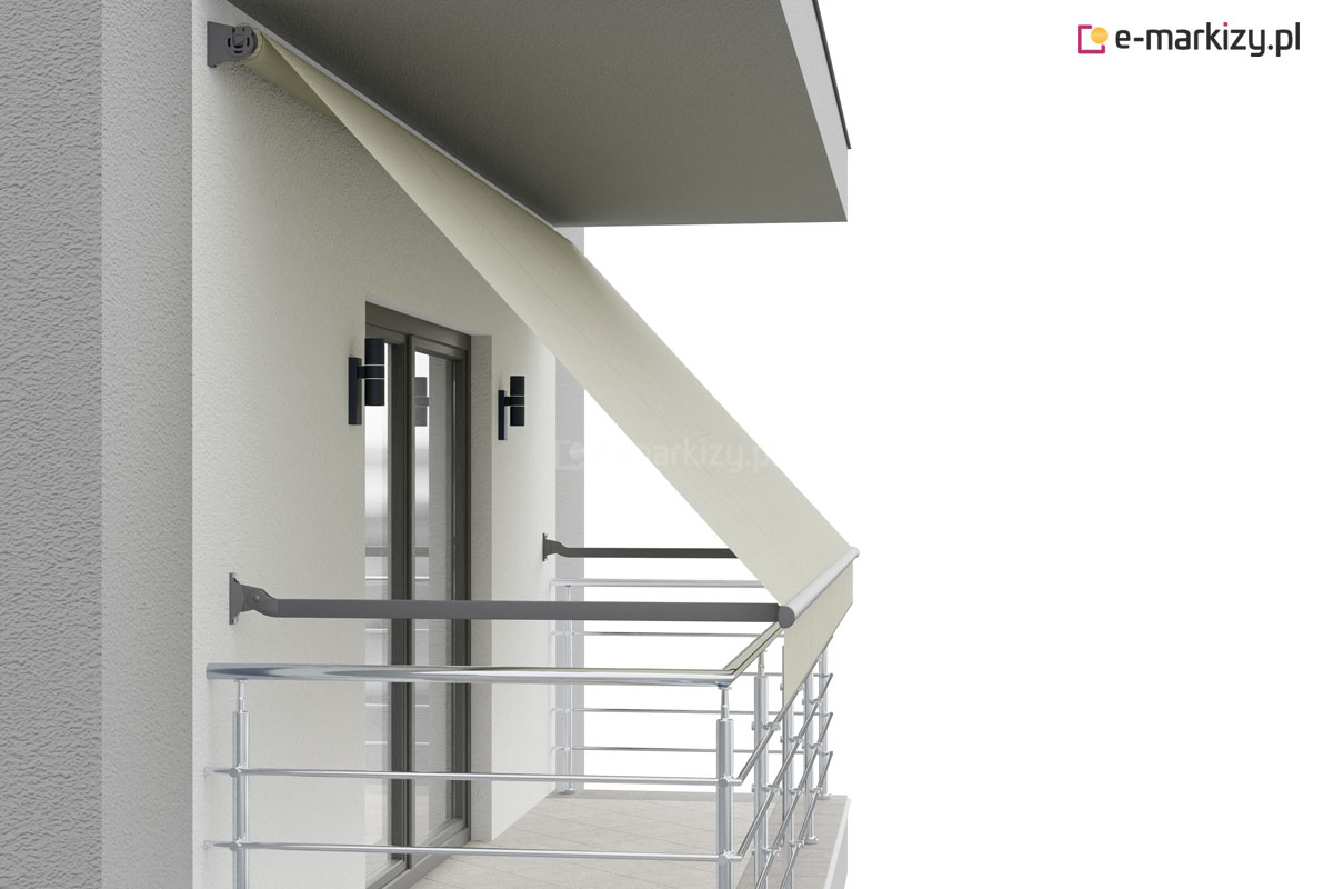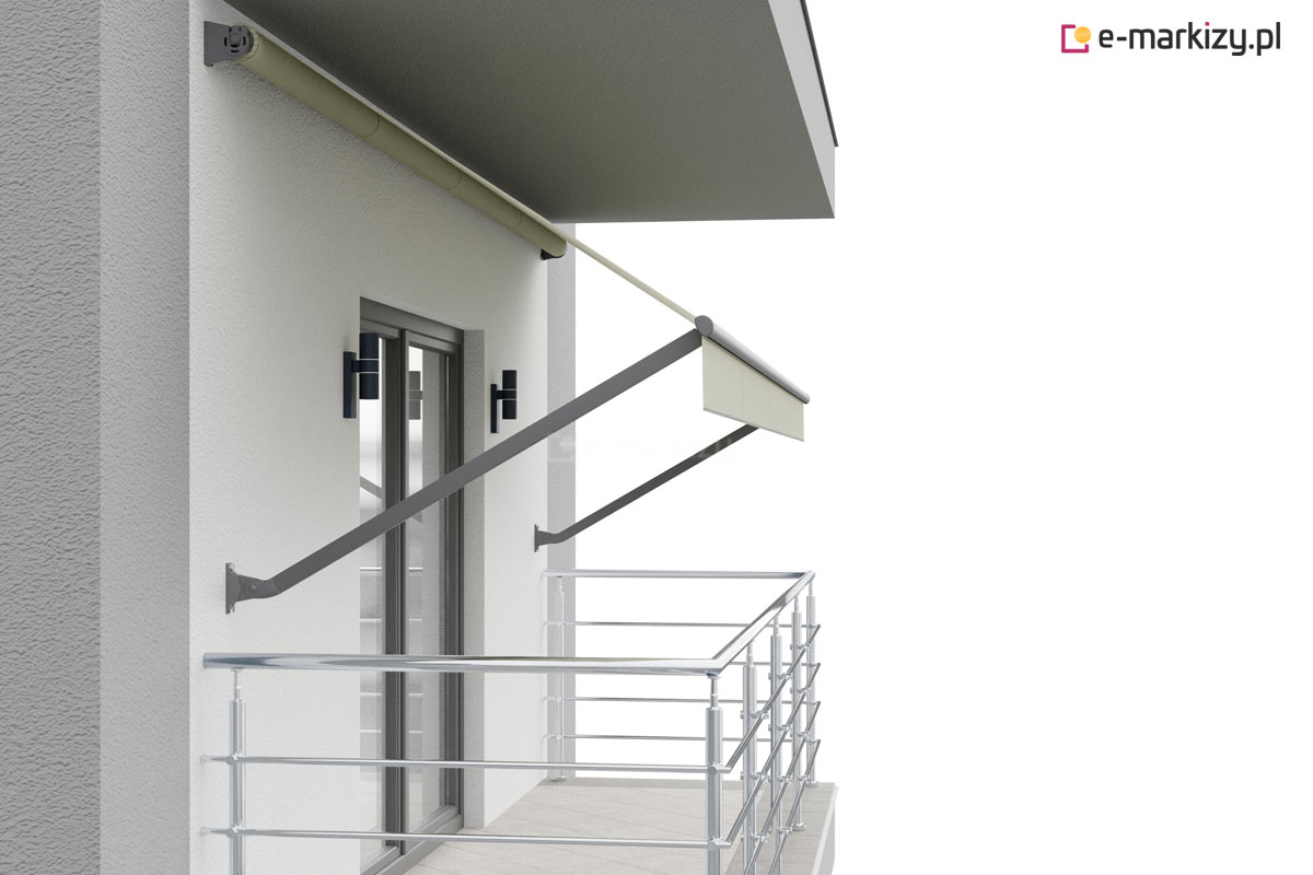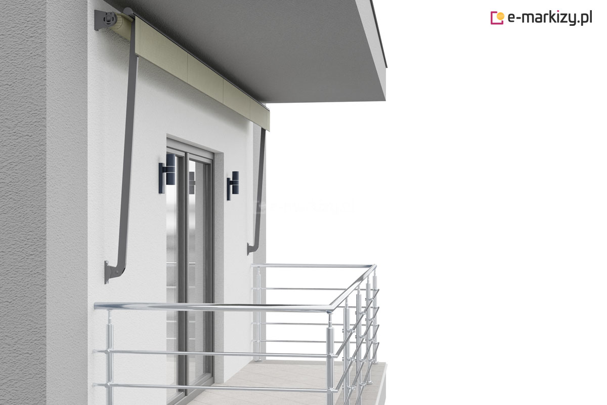 Markiza balkonowosklepowa montowana jest na dwóch uchwytach.