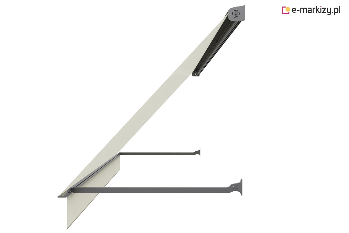 Markiza Balkonowo sklepowa posiada ramiona o 3 różnych szerokościach 100,140 i 180cm. Ramiona przykręcamy bezpośrednio do ściany lub wnęcki (przy użyciu wsporników wnękowych). Ten sposób mocowania ramion, powoduje bez problemową i wygodną obsługę, bardzo dużą stabilność i odporność na wiatr. Ramiona mają wewnątrz specjalny naciąg, dzięki czemu, tkanina jest przy każdym położeniu, precyzyjnie naprężona. Kręcąc korbą lub sterując silnikiem, tkanina zmienia swój kąt. Można ją też oczywiście całkowicie złożyć. Ten model markizy polecany jest szczególnie na wszelkie przysłonięcia okien, witryn, balkonów. Długość tkaniny, która nawinięta jest na wałek markizy to ok. 219cm.