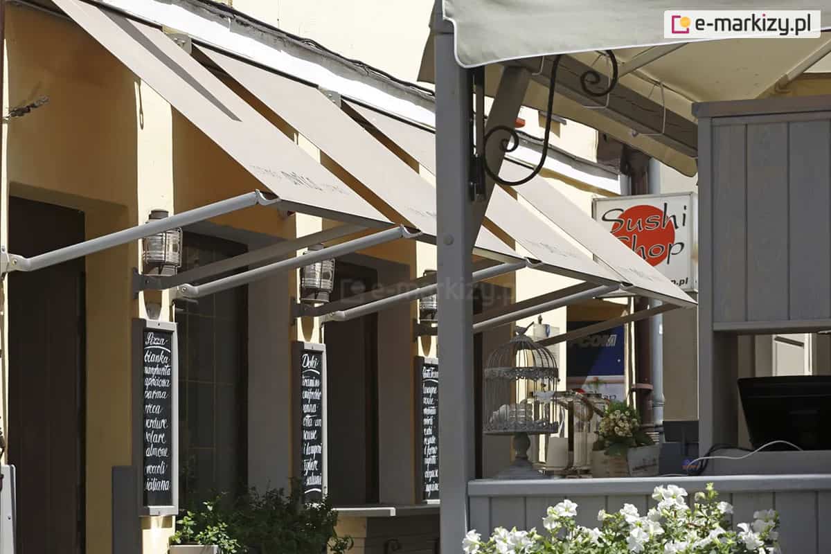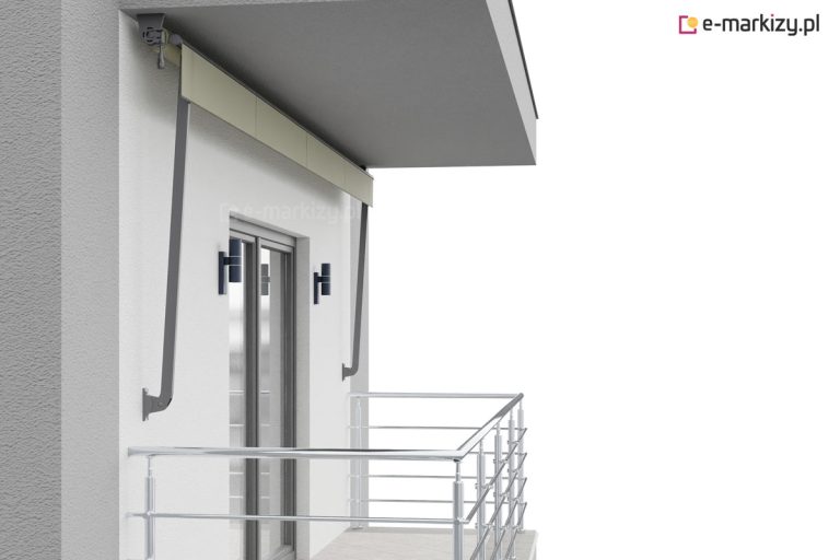 Markiza balkonowosklepowa montowana jest na dwóch uchwytach.