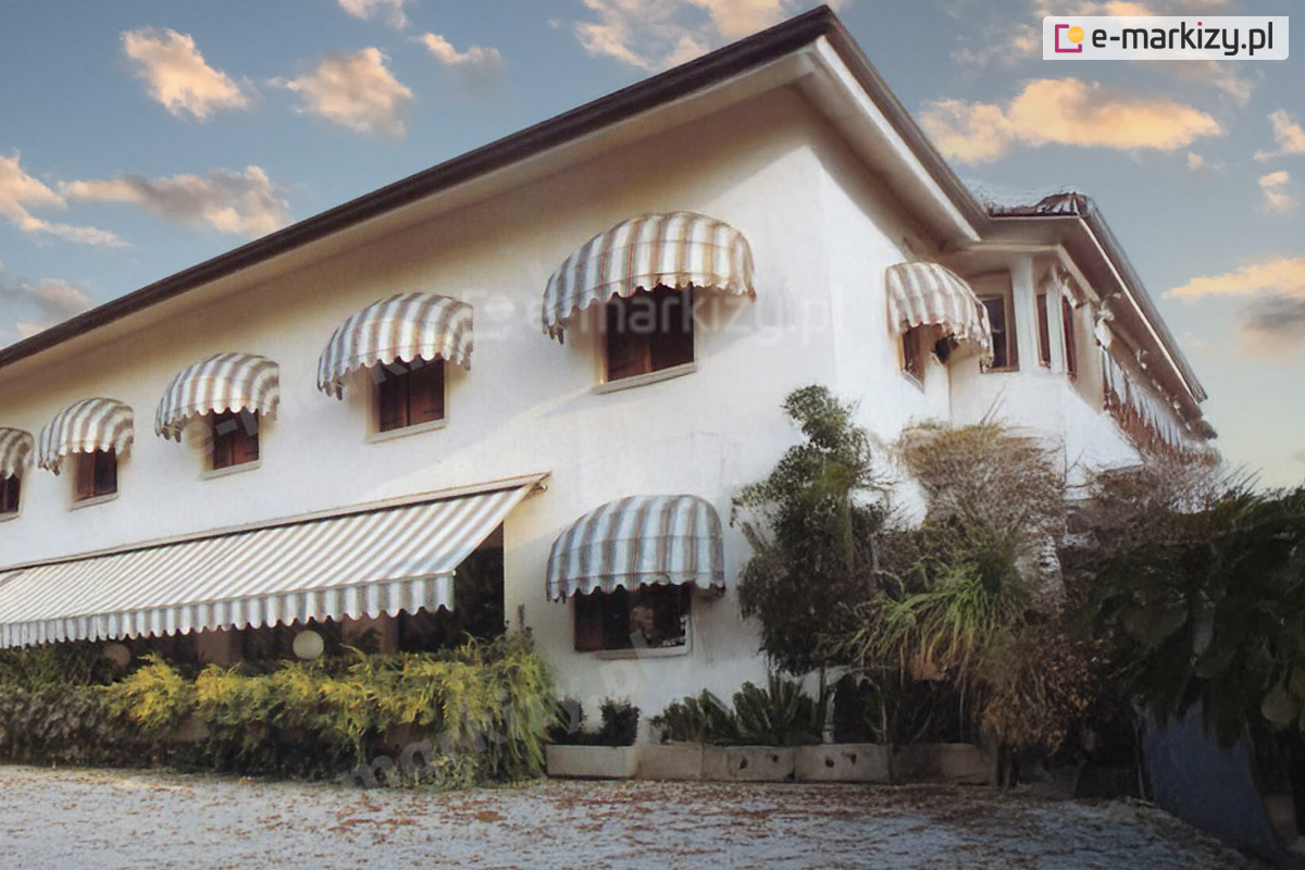 Markizy do wysięgu 100cm posiadają 3 pola, a powyżej 100cm 4 pola. Możliwa falbana prosta lub falowana.