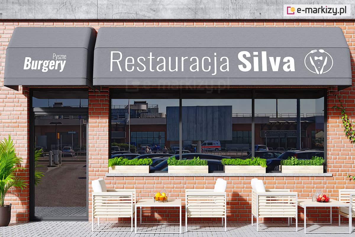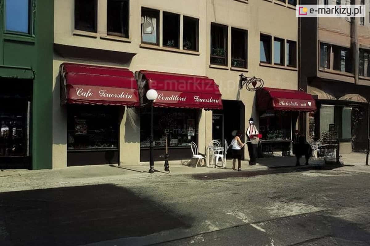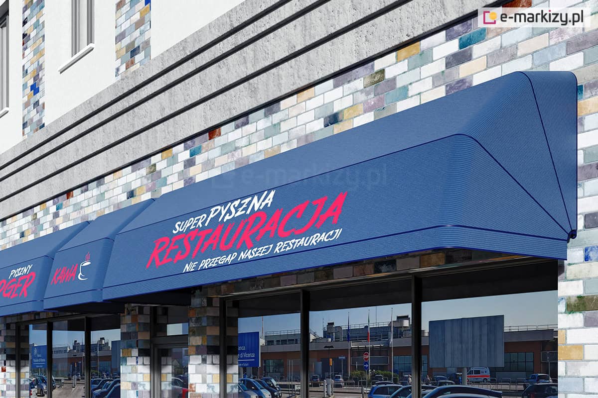 Reklama nadrukowana na tkaninie markizy wygląda o wiele estetyczniej niż standardowe bannery reklamowe.