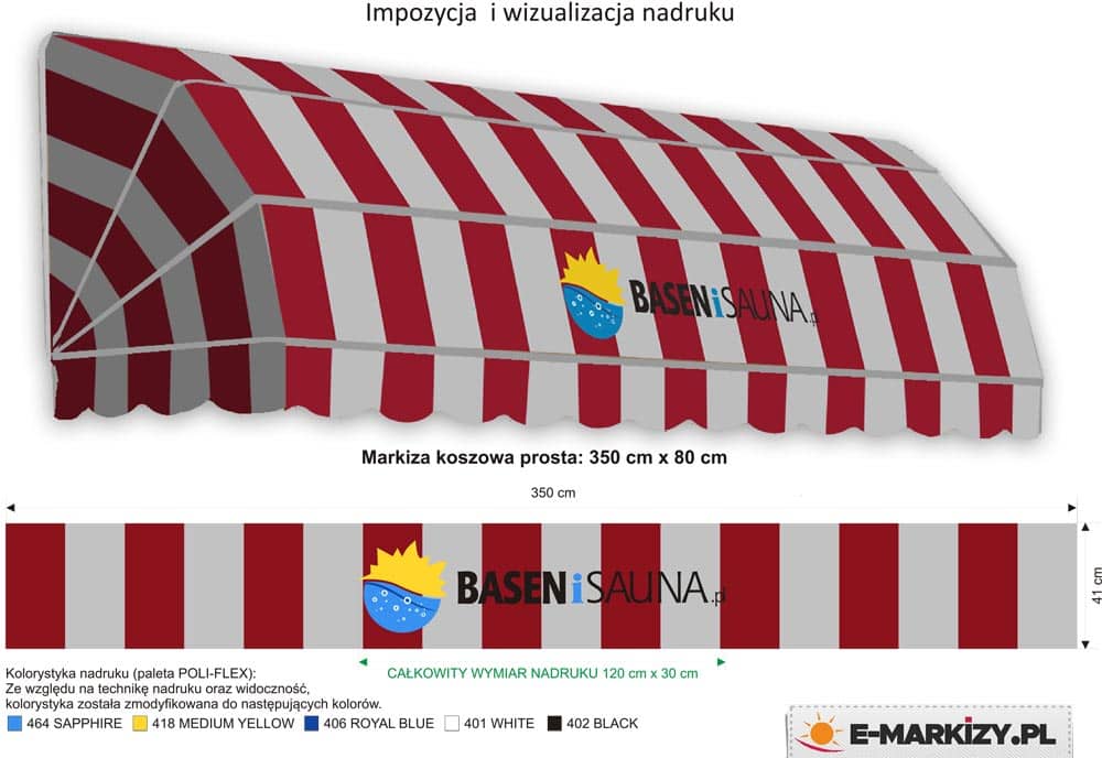 Reklama na markizach może przedstawiać m.in. logo, napis lub hasło reklamowe. Nadruk wykonujemy w jednym lub w wielu kolorach, zarówno na poszyciu markizowym jak i na falbanie. Wysokiej jakości nadruki reklamowe na markizach to wizytówka sklepu, restauracji czy firmy, a także podkreślenie indywidualności obiektu poprzez użycie designu, który odpowiada estetycznym wymaganiom Klienta. Druk reklamowy na markizach wyceniany jest indywidualnie w zależności od rodzaju i miejsca nadruku.