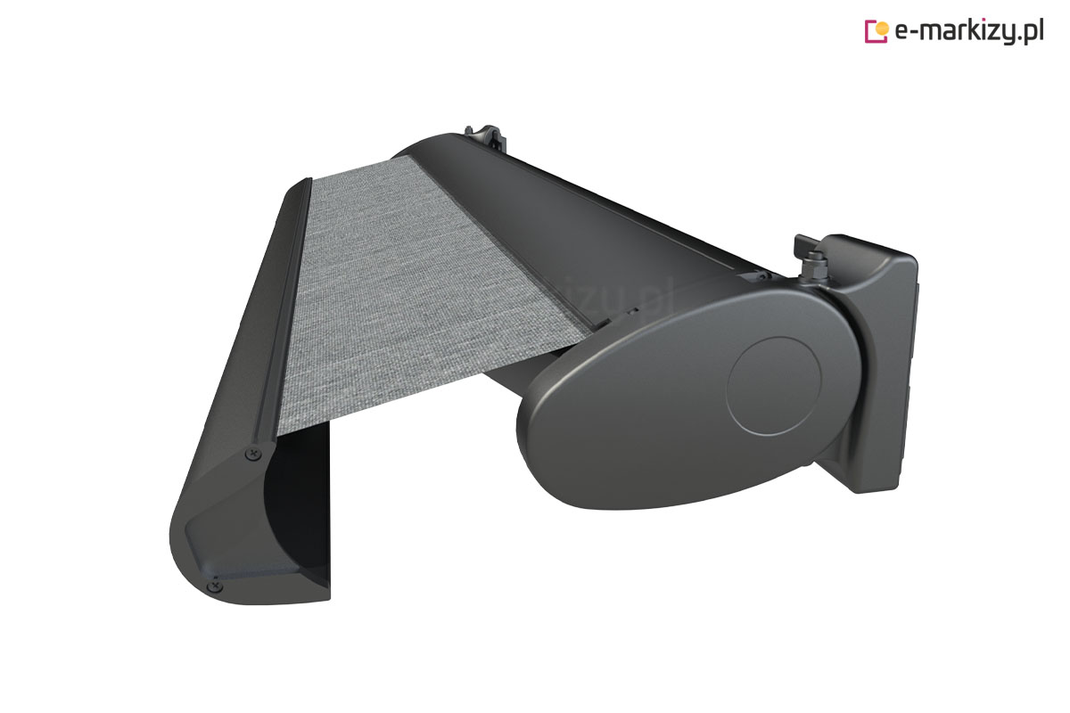 Markiza wyposażona jest w zamykaną kasetę i dedykowane uchwyty przeznaczone do montażu ściennego