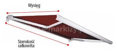Markiza posiada dwa główne wymiary na podstawie których robiona jest wycena. Pierwszy to całkowita szerokość markizy, a drugi wysięg markizy (wysuw). Wymagane wymiary podawane są w cm., norma produkcyjna przewiduje tolerancję wymiarów szerokości -+2cm. W zależności od szerokości całej konstrukcji, producent przewiduje inną ilość uchwytów mocujących. Wysokość konstrukcji zależna jest od wybranego modelu i nie wpływa ona na cenę. Instrukcja pomiaru markizy tarasowej przedstawiona jest na obrazku obok.