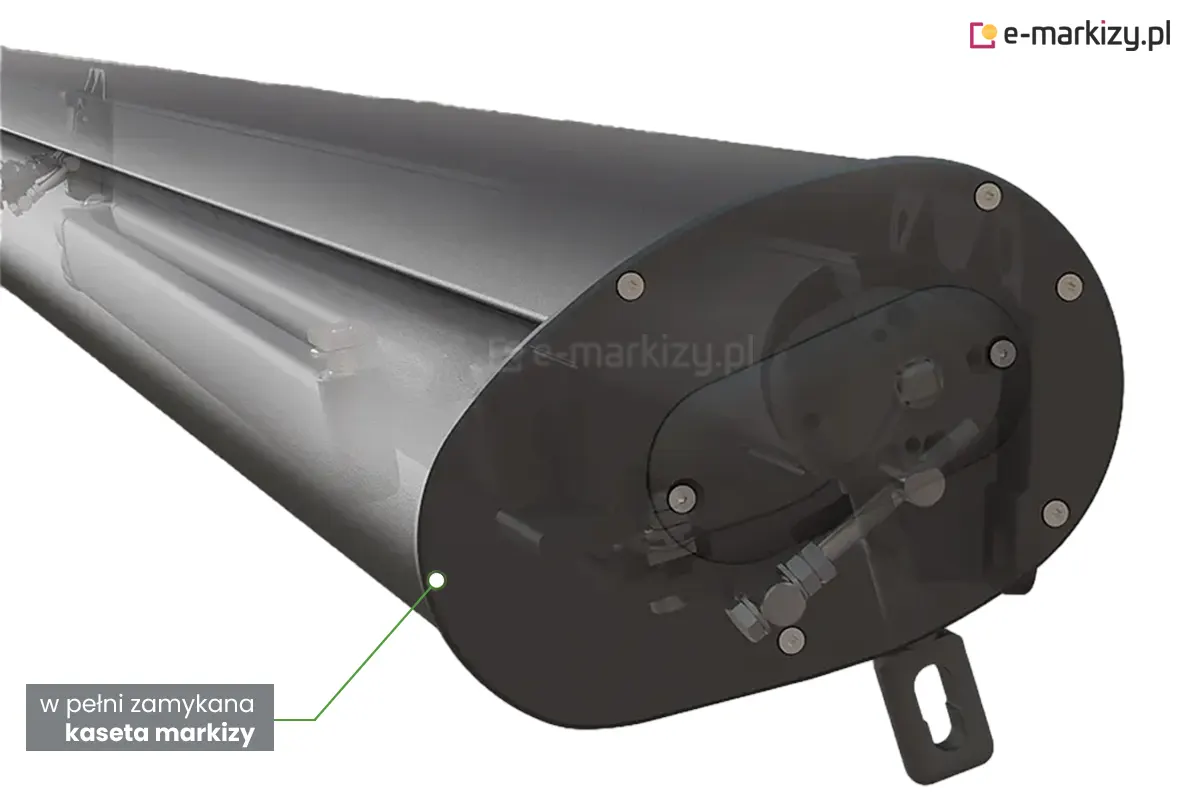 - Za dopłatą markizę możemy doposażyć w silnik elektryczny, który automatycznie zwija markizę. Silnik ten dostępny jest także w wersji z awaryjnym otwieraniem, czyli dodatkową korbą pozwalającą sterować markizą manualnie