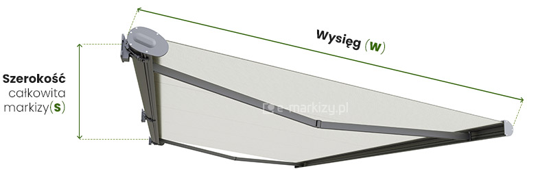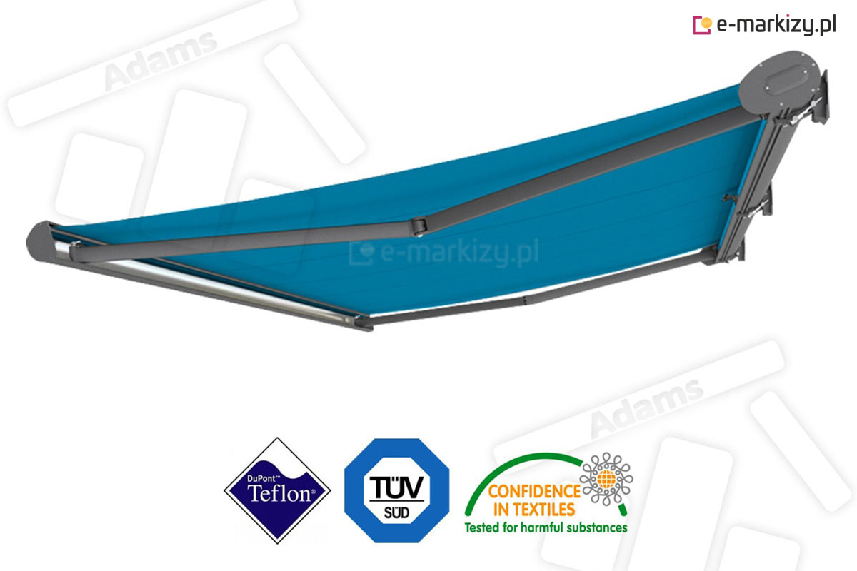 Markizy o większej szerokości wyposażone są w podporę rury nawojowej, dzięki czemu tkanina napinana jest bardziej równomiernie. Maksymalna szerokość markizy to 6m a wysięg to nawet 3,6m.