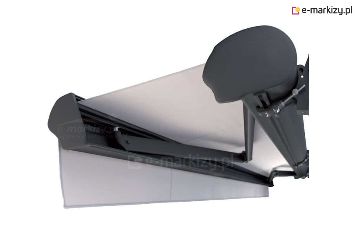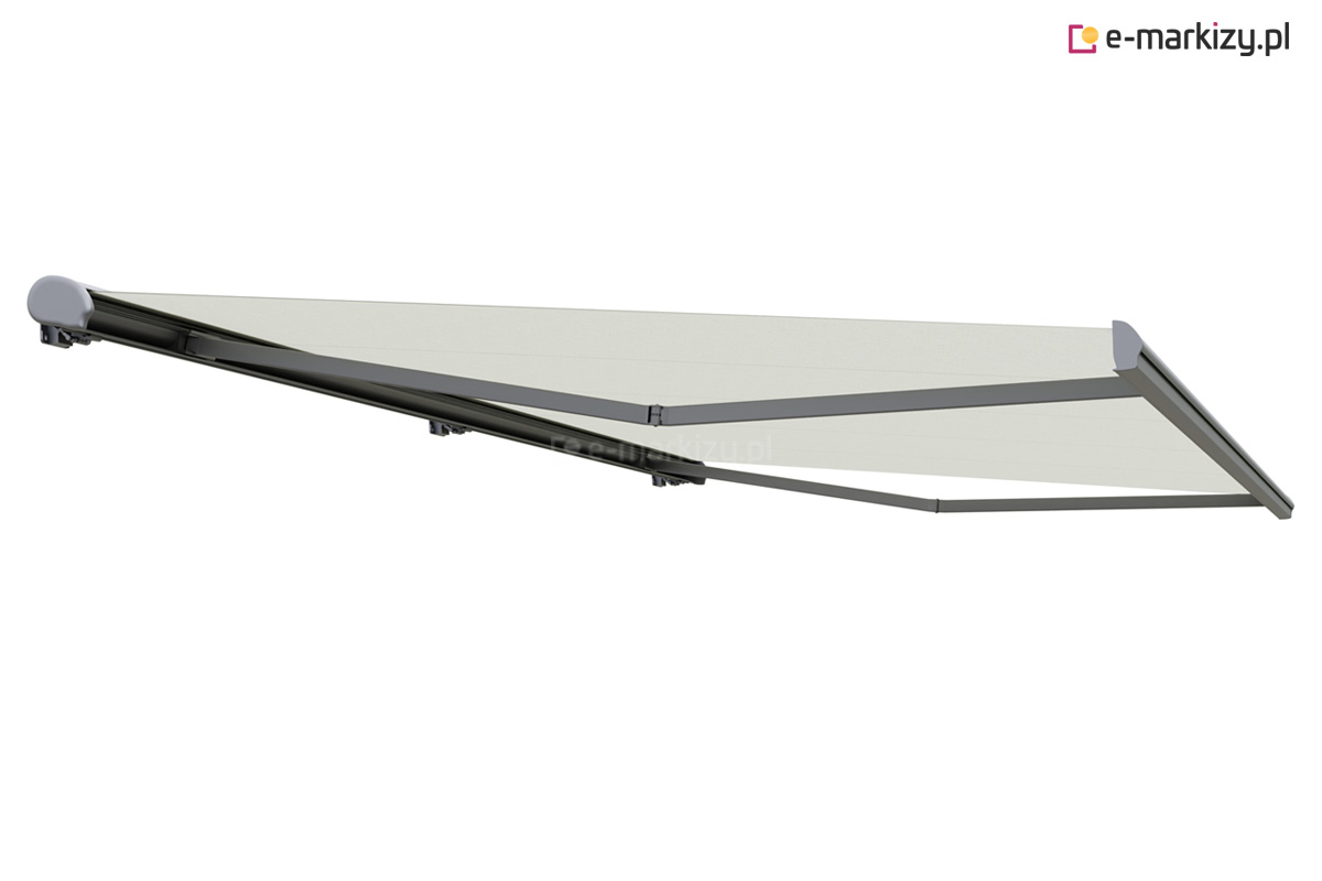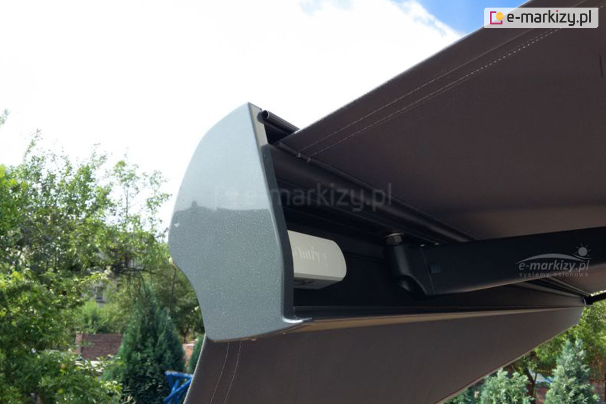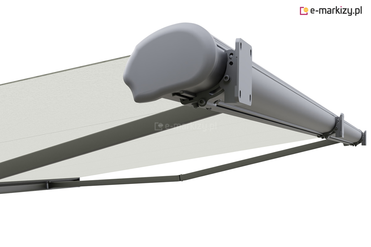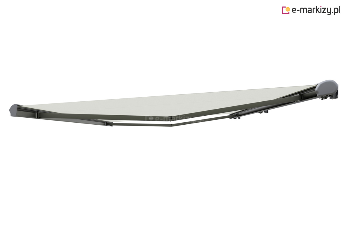 Markiza tarasowa Dakar w pełnej kasecie, doskonała do zaciemnienia większych tarasów. Markiza w kasecie, nowoczesny wygląd, osłona tkaniny i ramion przed czynnikami atmosferycznymi. Uszczelki zabezpieczające w kasecie. Rozkładane aluminiowe ramiona z łańcuchem Flyera, zamocowane na konsolowych uchwytach. Do wyboru 5 popularnych kolorów konstrukcji, w tym Antracyt. Duży wybór tkanin. Markiza Dakar w kasecie, produkcji firmy Selt z Opola