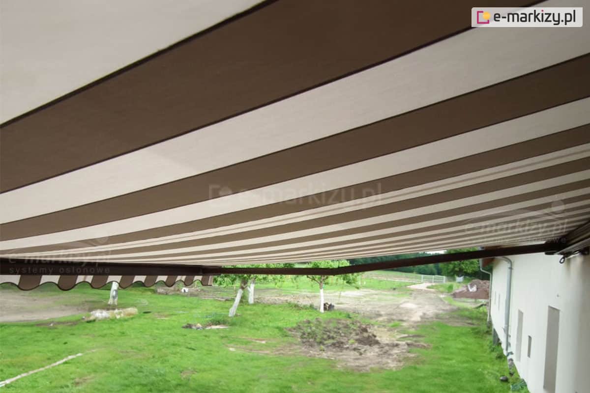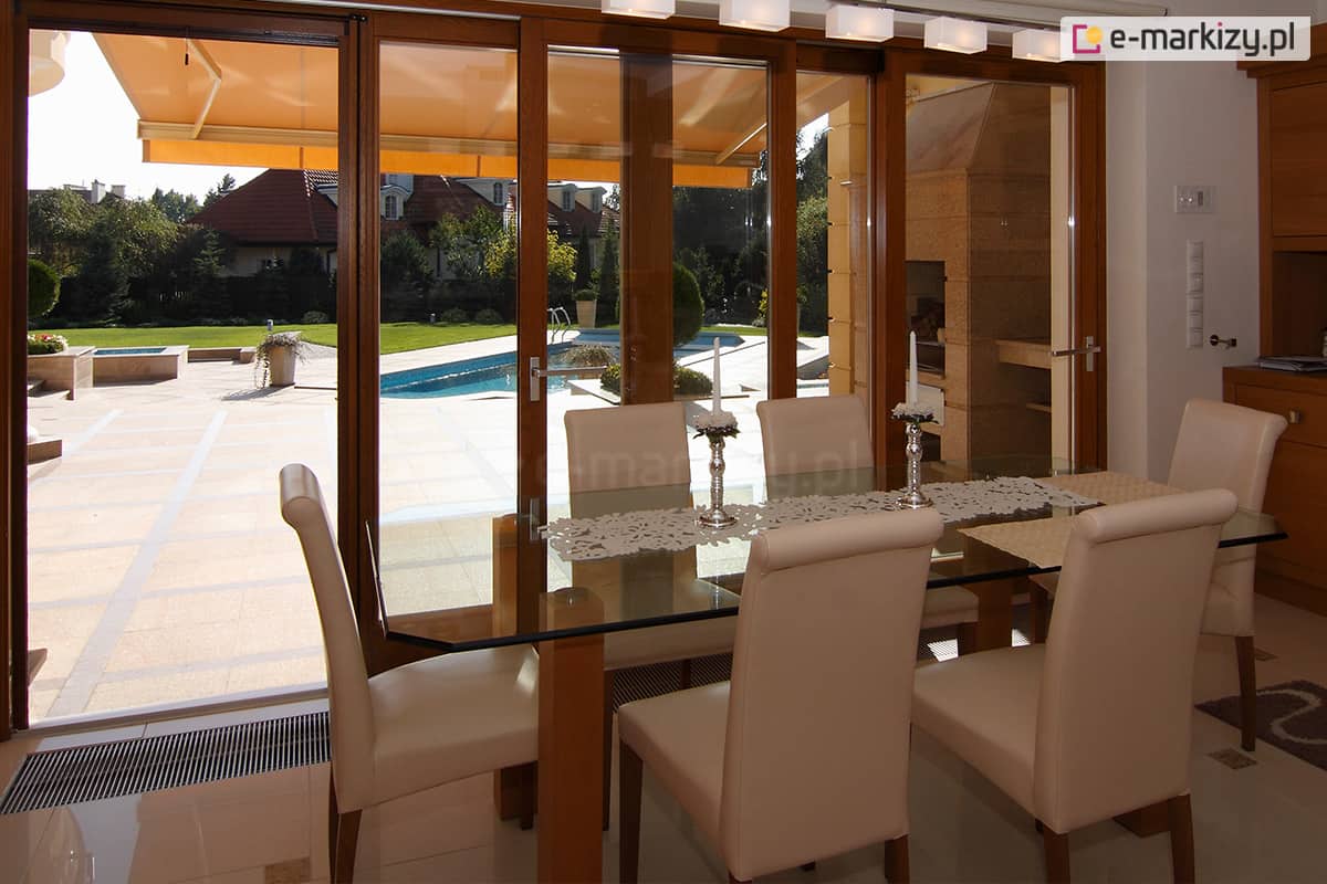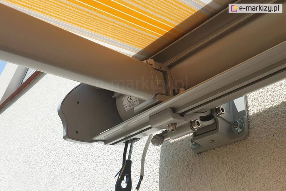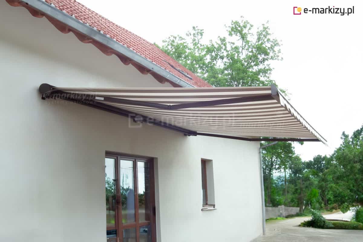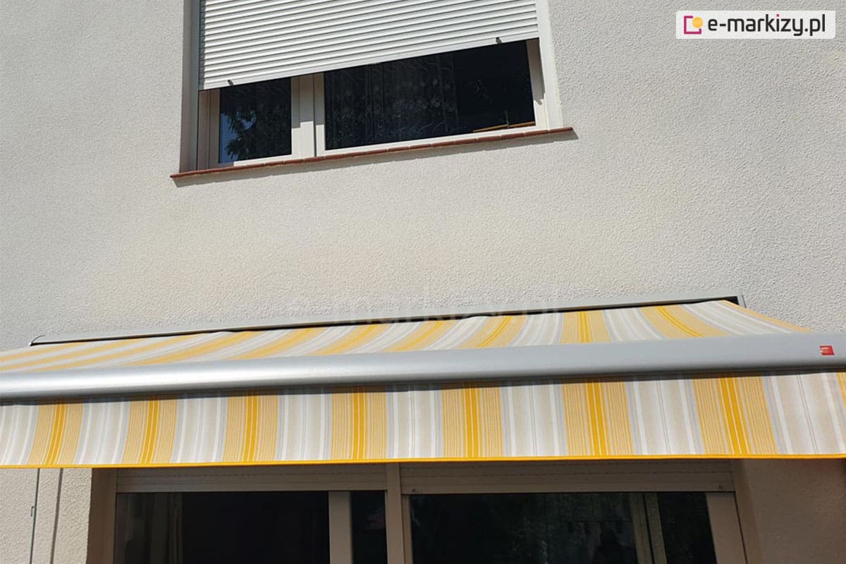 Markiza tarasowa Dakar w pełnej kasecie, doskonała do zaciemnienia większych tarasów. Markiza w kasecie, nowoczesny wygląd, osłona tkaniny i ramion przed czynnikami atmosferycznymi. Uszczelki zabezpieczające w kasecie. Rozkładane aluminiowe ramiona z łańcuchem Flyera, zamocowane na konsolowych uchwytach. Do wyboru 5 popularnych kolorów konstrukcji, w tym Antracyt. Duży wybór tkanin. Markiza Dakar w kasecie, produkcji firmy Selt z Opola