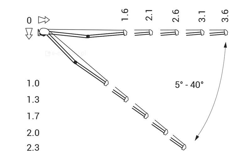 Wysięg: od 160 do 360cm