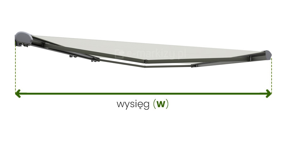 * pamiętaj, że wysięg markizy jest ściśle uzależniony od szerokości markizy. Im szersza markiza, tym wysięg może być większy.