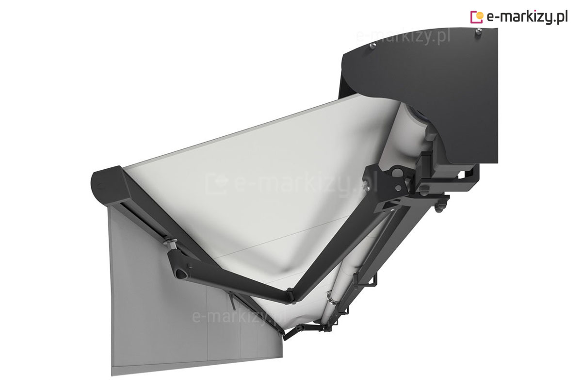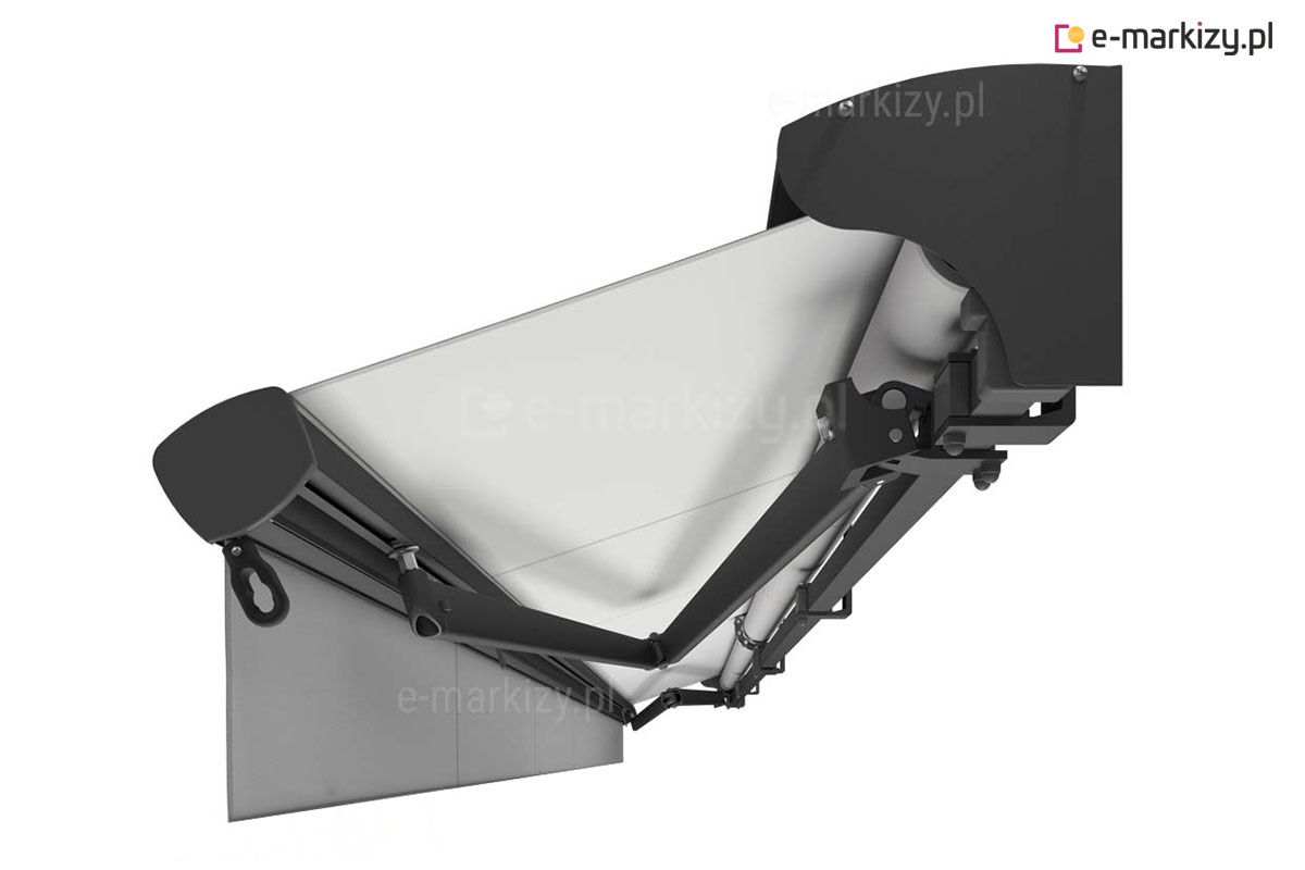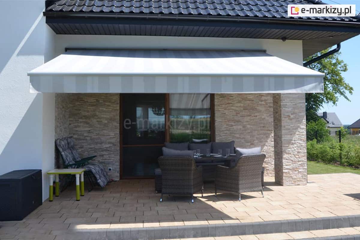 Markiza tarasowa Jamaica, bez kasety, opcjonalnie daszek nad markizę/ półkaseta do markiz. Jedyna markiza firmy Selt, w której można zastosować falbanę rozwijaną w belce przedniej – tzw. Volant. Rozkładane ramiona, aluminiowa konstrukcja, duże wymiary nawet 700x360cm. Różne tkaniny akrylowe, zaimpregnowane teflonem. Do wyboru tkaniny w pasy lub gładkie i 5 kolorów konstrukcji. Standardowo markiza z napędem ręcznym, a za dopłatą do wyboru silniki oraz automatyka. Do markizy można zamontować oświetlenie led i przednie podpory teleskopowe standard lub podpory teleskopowe Lux. Markiza Selt, Polski producent