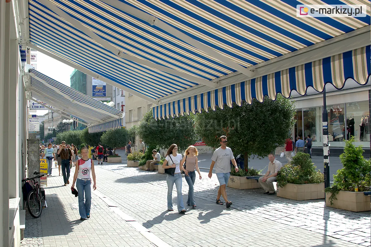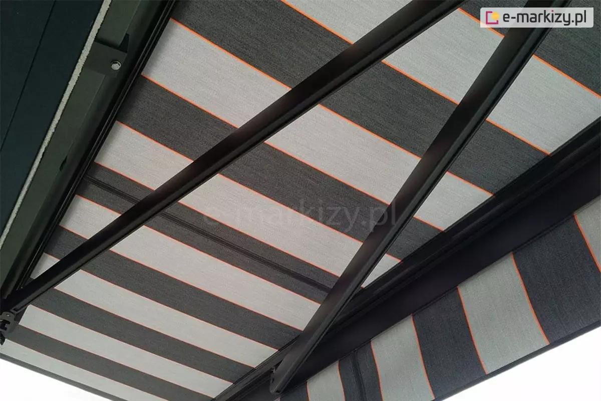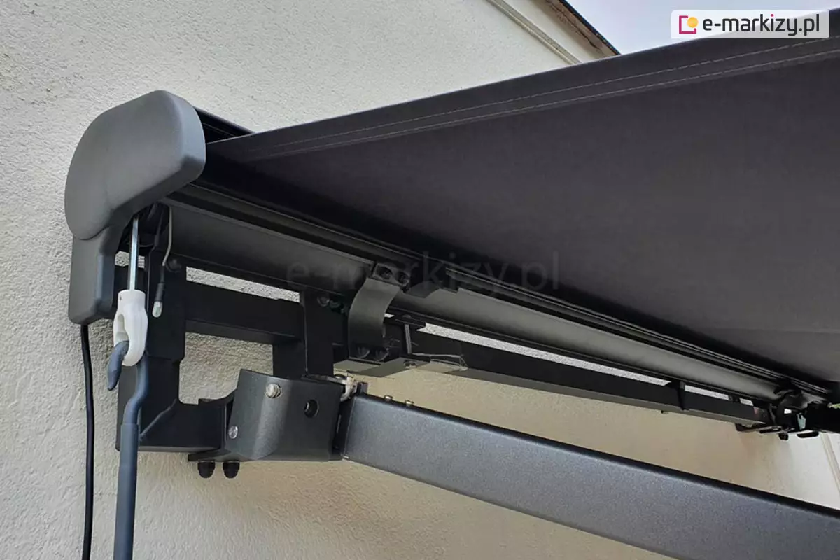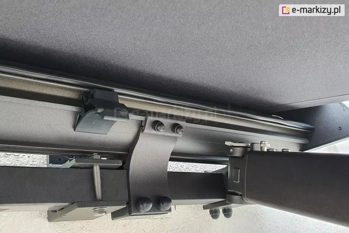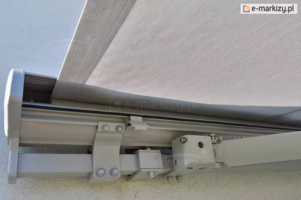 Cała konstrukcja markizy opiera się na solidnej aluminiowej belce kwadratowej, co daje pewną swobodę w wyborze miejsca zamocowania uchwytów, a także ułatwia montaż markizy. Konstrukcja markizy lakierowana jest techniką proszkową na kilka standardowych kolorów. Do markizy możemy opcjonalnie zamontować napęd elektryczny z automatyką i oświetlanie led.