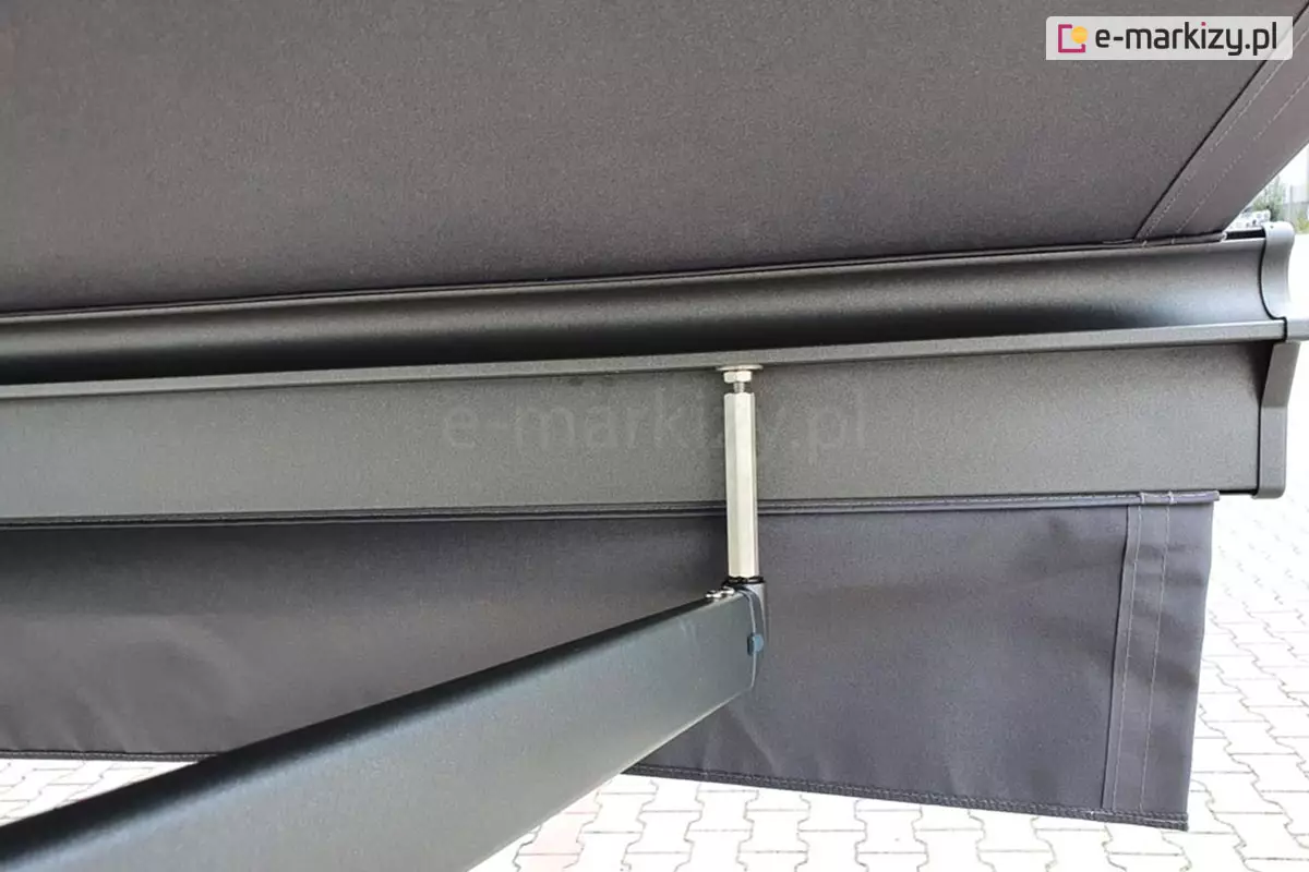 Podpory teleskopowe stanowią dodatkowe podparcie belki przedniej markizy Palladio. Doskonale sprawdzą się przy napędzie ręcznym!