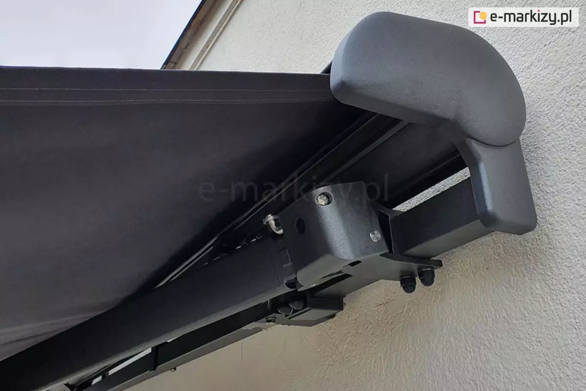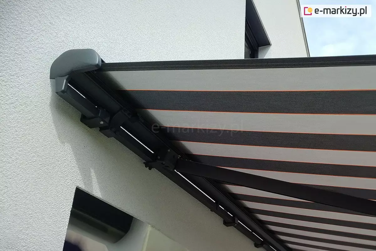 Konstrukcja markizy tarasowej Palladio posiada regulowany kąt pochylenia ramion. Płynna regulacja w zakresie 5° – 50° pozwala na dopasowanie nachylenia markizy do indywidualnych potrzeb.