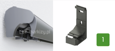 Markiza tarasowa w kasecie standardowo posiada uchwyty do ściany (1). Jest to najczęściej stosowany sposób montażu markizy Palladio. Za dopłatą możemy dokupić uchwyty do sufitu (2) lub krokwi dachowej (3), co pozwoli na zamocowanie markizy do innej powierzchni niż ściana.
