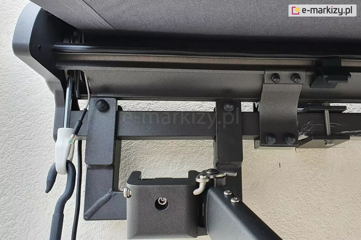 Montaż markizy tarasowej Palladio w zasadzie jest bardzo prosty i ogranicza się właściwie do zamocowania uchwytów na ścianie (na suficie lub do krokwi). Markiza Palladio dostarczana jest już w całości skręcona i wyregulowana.