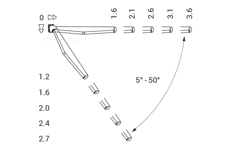 | Dostępne wysięgi | 1,6m; 2,1m; 2,6m; 3,1m; 3,6m; |