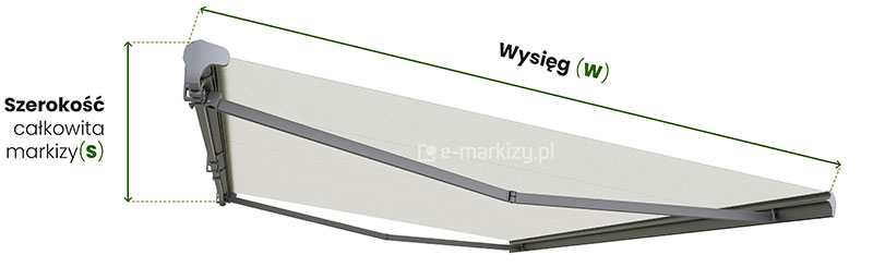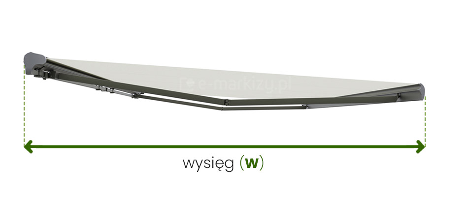 * pamiętaj, że wysięg markizy jest ściśle uzależniony od szerokości markizy. Im szersza markiza, tym wysięg może być większy.