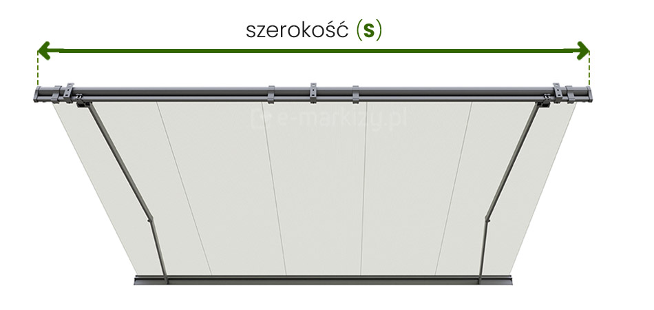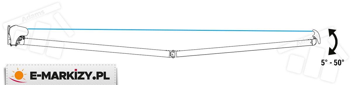 – Szerokość markizy od 410 do 700 cm (dostępny wysięg 160, 210, 260, 310, 360 cm)