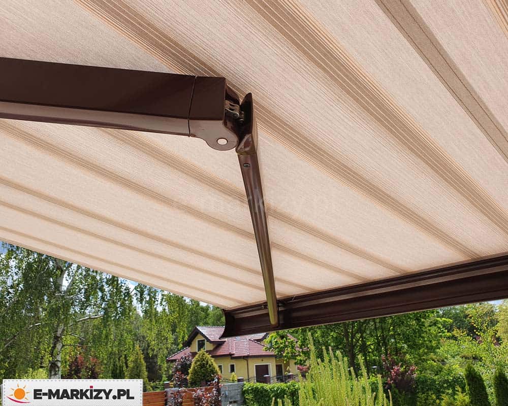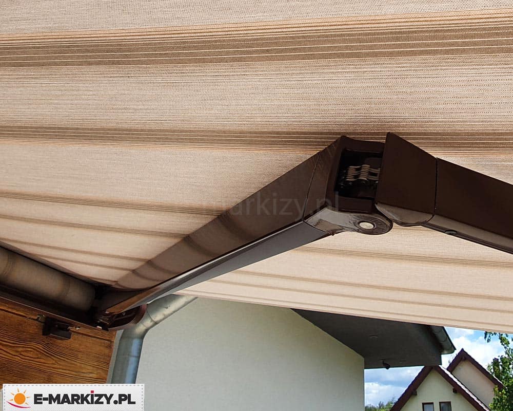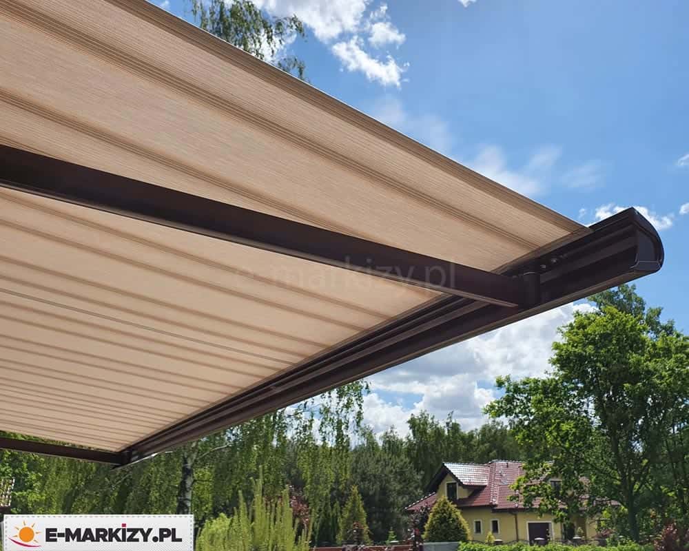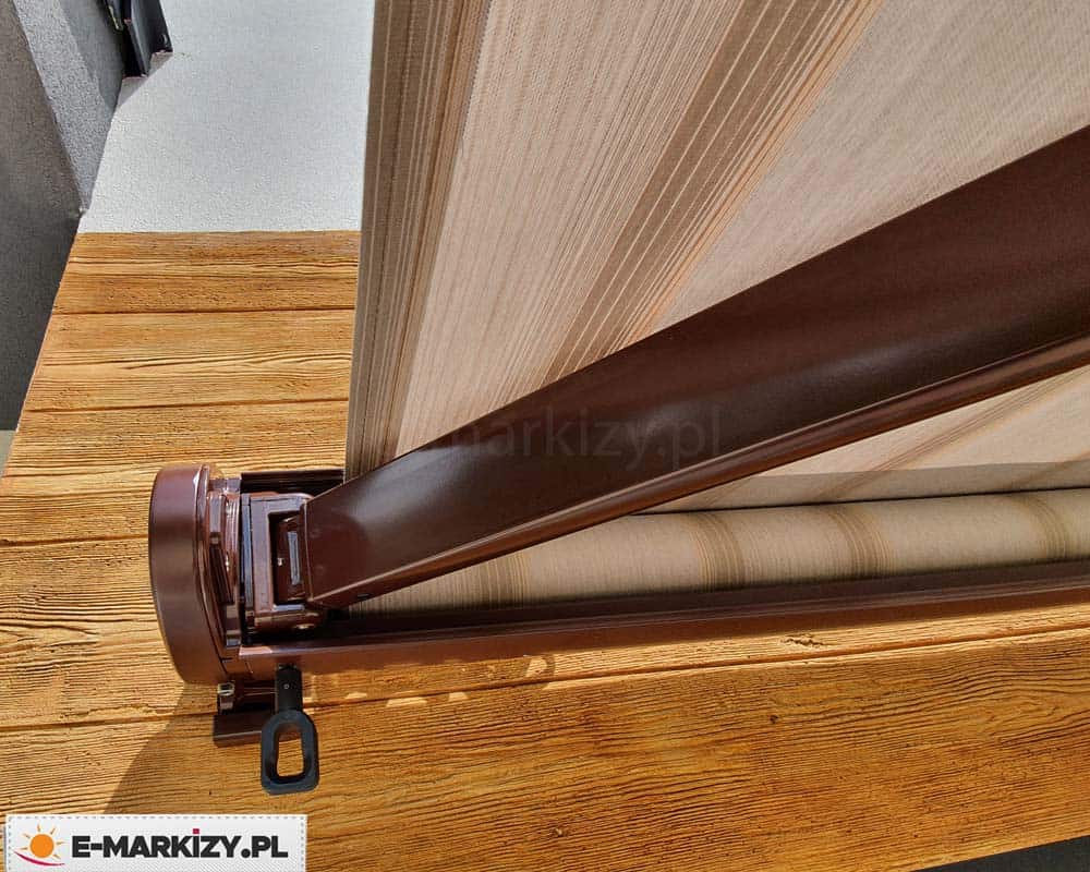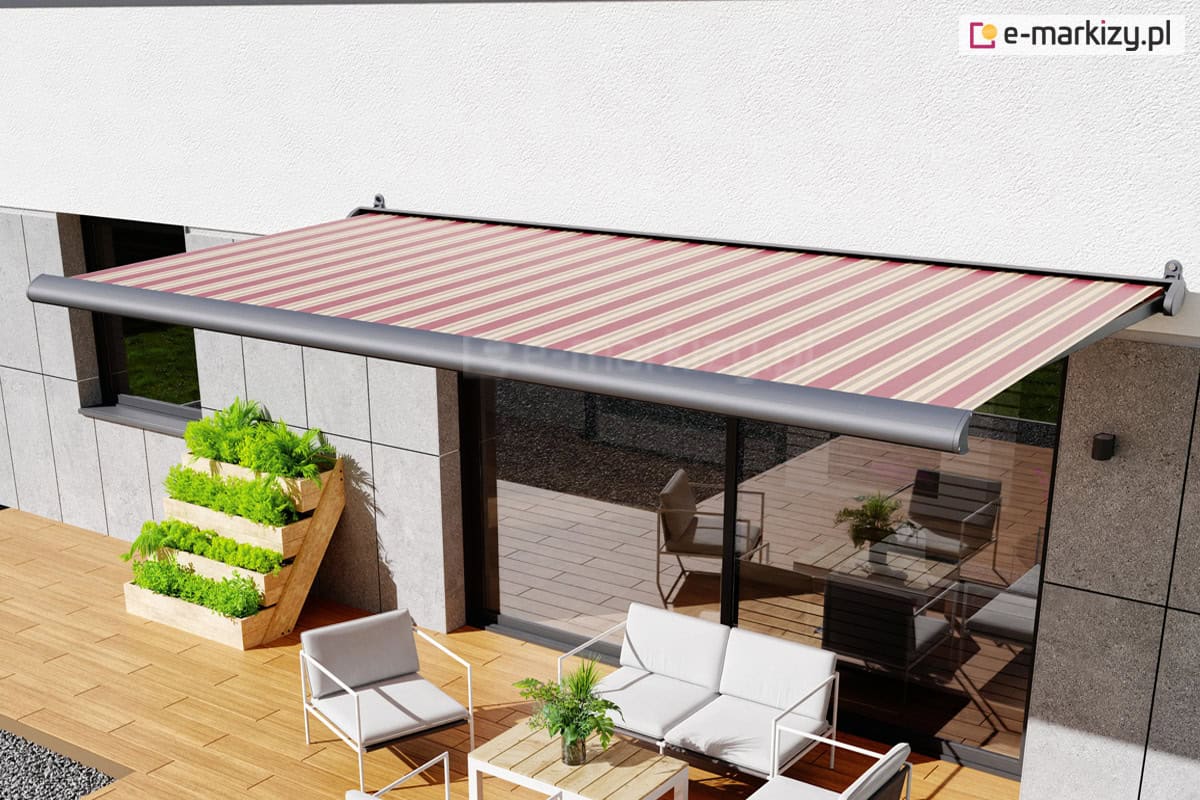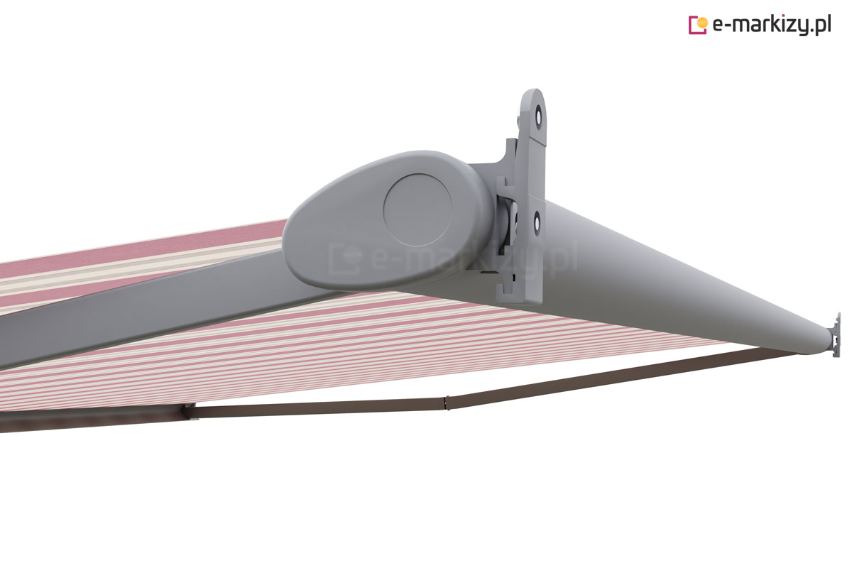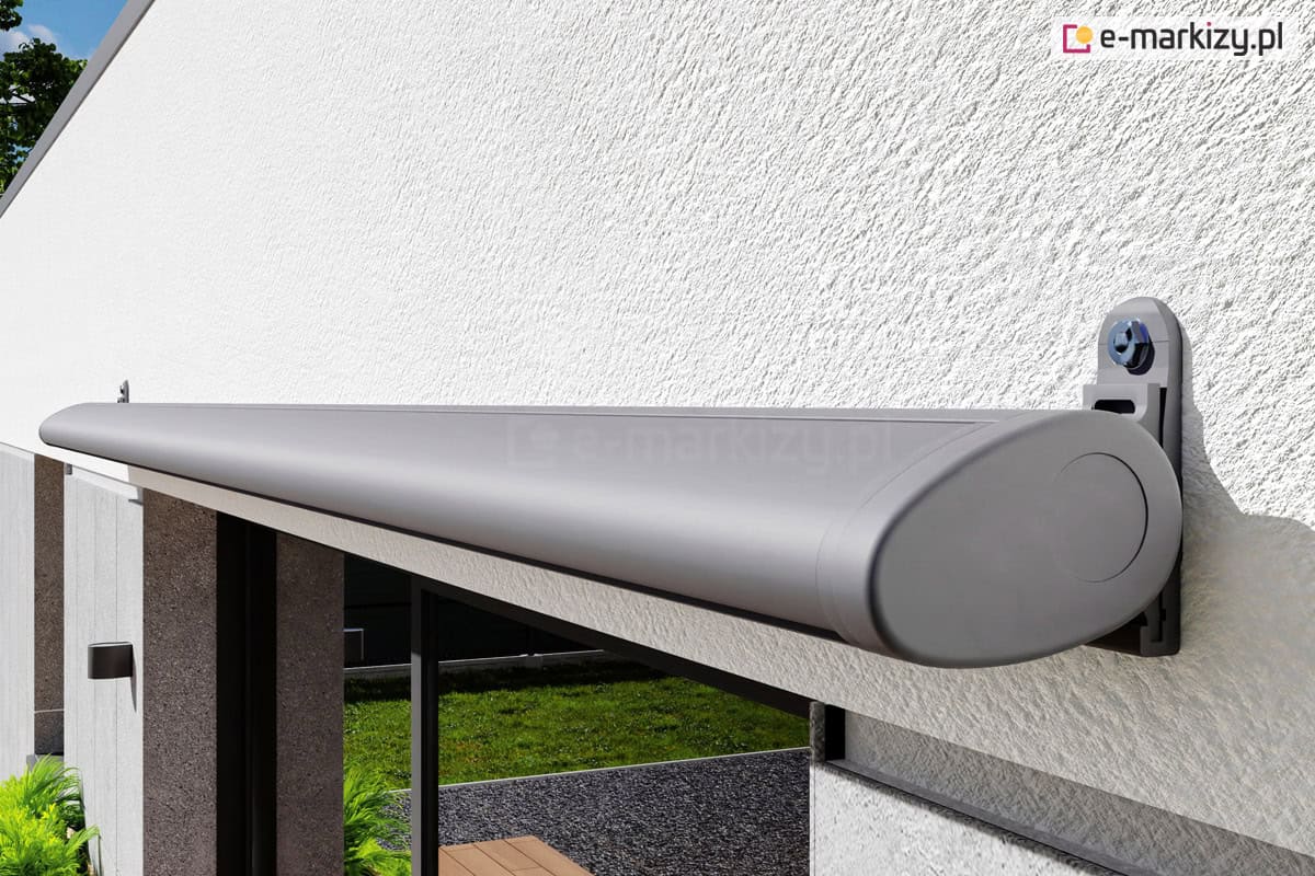 Szczelna owalna kaseta markizy doskonale chroni zwiniętą tkaninę przed warunkami atmosferycznymi, a lakierowanie konstrukcji dostępne jest w kilku standardowych kolorach.